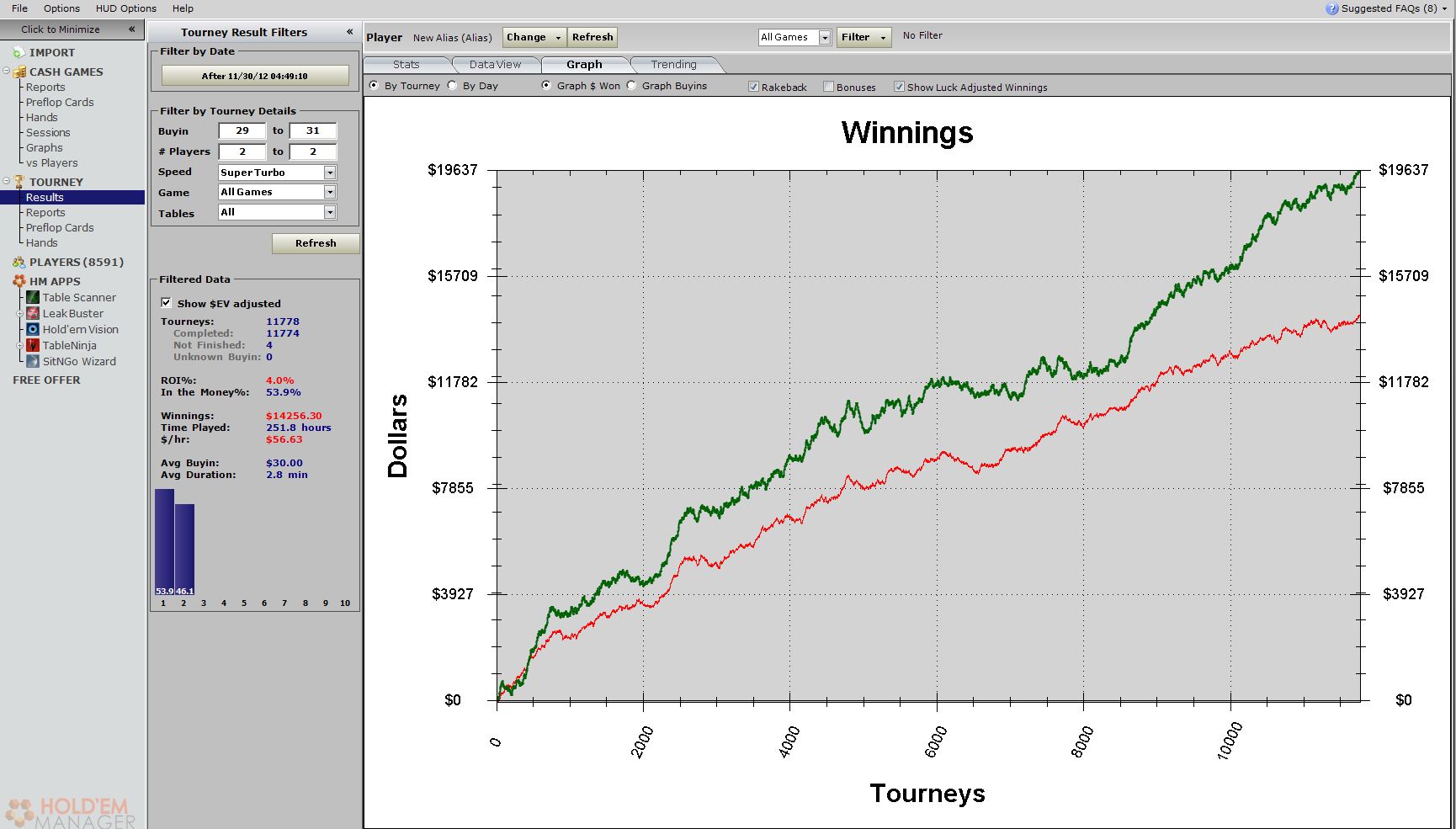 Ах да, начал добавлять 5й стол, уже часов 6 наиграл за пятью (добавляю как правило вначале сессии вечером, когда сложнее всего когонить заситить), пока оч тяжело играть сбиваюсь сразу, начинаю тугодумить, нехватает фокусировки и приходится постоянно голову поворачивать :donttilt: наверно пора покупать монитор пошире чтобы по вертикали 3 влазило )) Такс пора закругляться а то опять 37.5 млин :sick: график за полмесяца ниже.