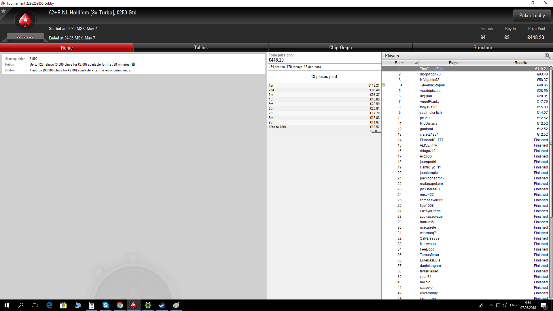 Всем привет, запустил для разогреву в кнокаут за 3 и сат на кнокаут за 10, планы на сегодня пройти сателит на турнир Synday Special 10 эвро с гарантией 20к, по возможности буду отбираться на подобные дорогие турниры с хорошими гарантиями (без фанатизма, фоново), впереди новый игровой день, к новым победам