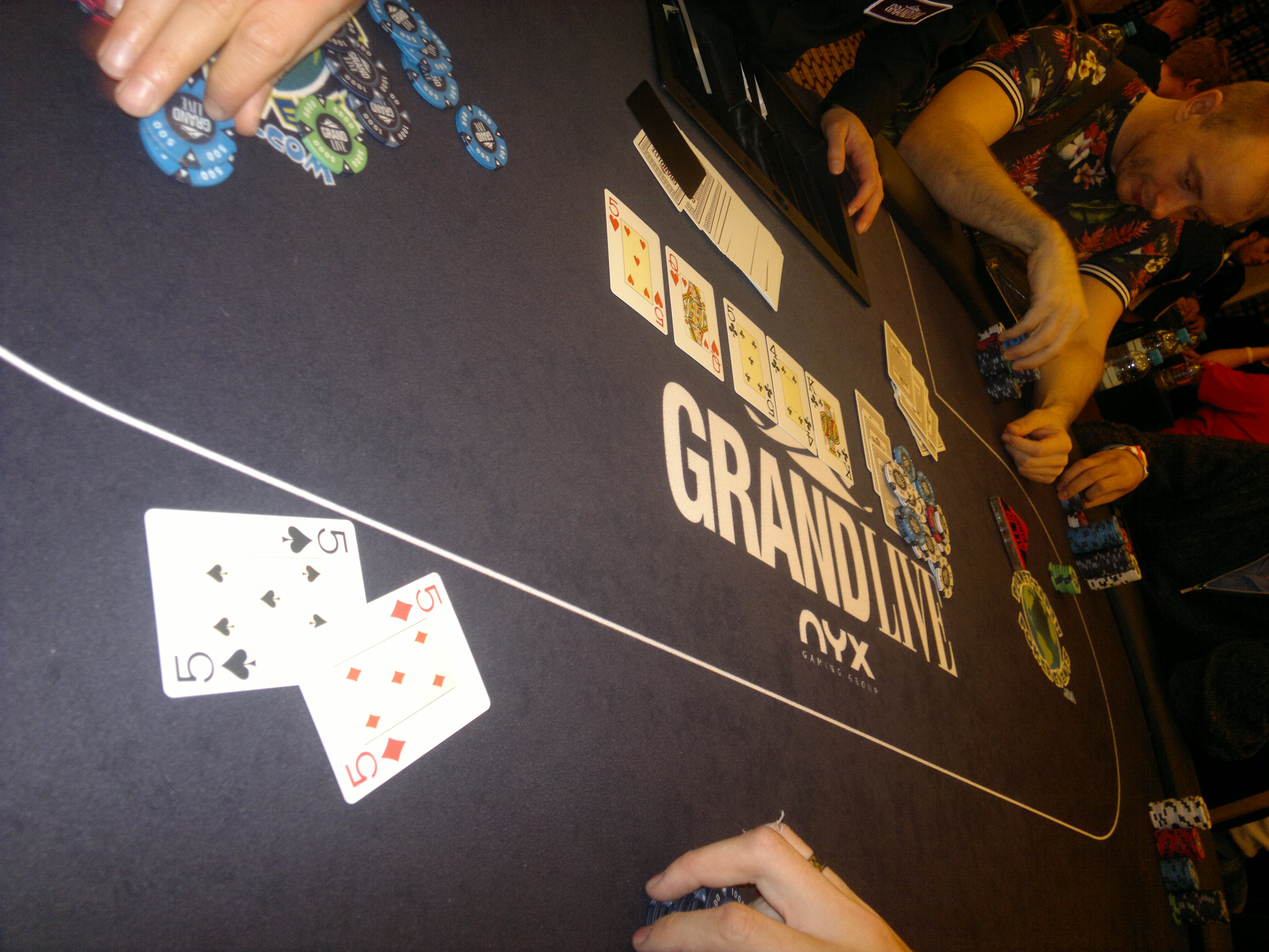 Справа от меня сидел Сергей Попов из Архангельска - неплохой регуляр и прекрасный рассказчик. Накануне он играл в турнире, сидя за столом между Лыковым и Селбст, поэтому за нашим микролимитным столиком по 1100 евро он явно расслаблялся :)