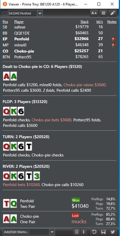 Да и считать удалив одного игрока в корне не верно, так как в тривэй поте совсем другая игра. Нельзя считать тривэй пот не учитывая игрока которые ещё был в игре.