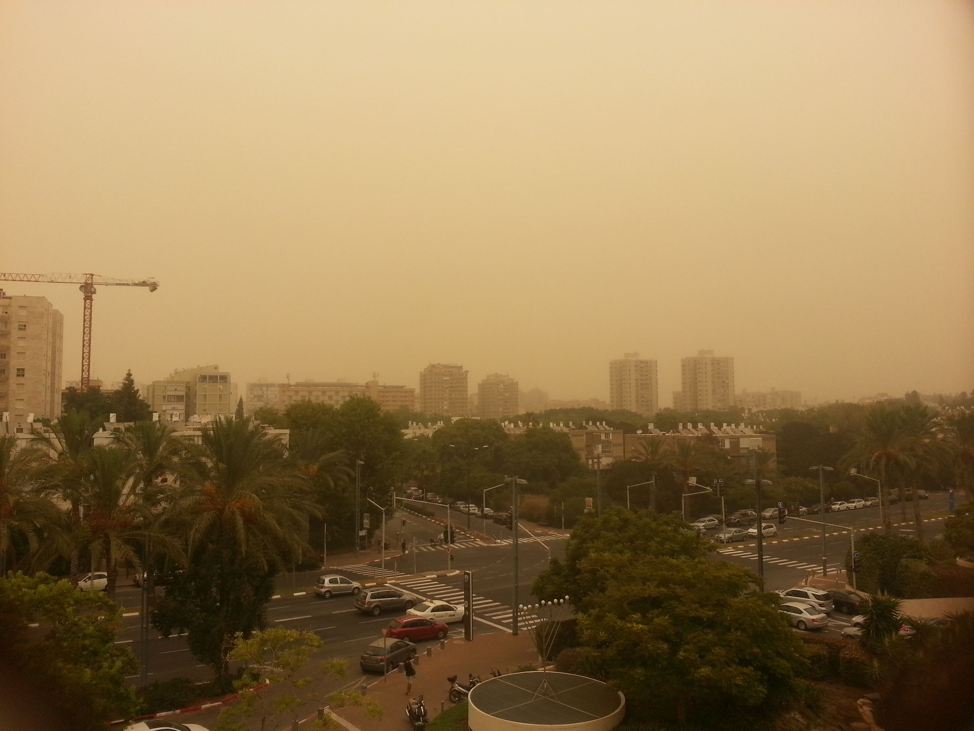 Ну а пока погода подарила сюр .Из Сахары прилетел песок и окрасил все в желтые тона,примерно как фильтр "сепия". Влажность при заходе воздуха из Африки обычно опускается до 25-30%,а температура подымается до 40-44. В этот раз влажность осталась на привычном летнем(июль-август-сентябрь) уровне 80-85% и температура не поднималась выше 34. Аномалия,блин.Только недавно писал,хоть бы какую аномалию в прогнозе погоды и мне станет интересно.Вот стало ...но до чего же мерзко на улице