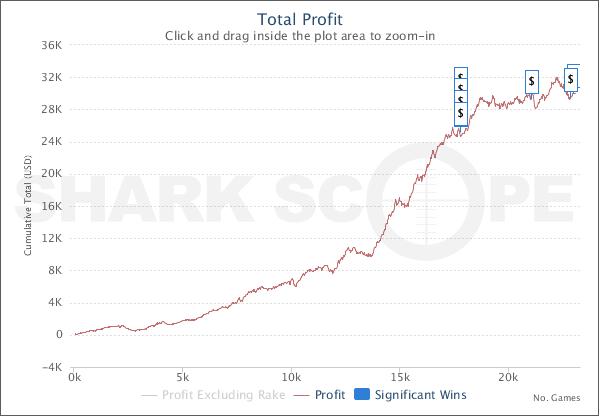Ужасно не складывалось по множителям, одни Х2, поэтому даже несмотря на хороший чипс ев, сыграл в минус 2БИ. Красная линия опять вгоняет в тильт, но есть ощущение, что сильно не добираю по ней (т.е. у оппов всегда руки, никто не выкидывает, а у самого в решающие моменты хитов нету), но дистанция пока не та, чтобы делать выводы. Ну и пара раздач : Изображаю короля PokerStars - $6.58+$0.42|20/40 NL (3 max) - Holdem - 2 players Hand converted by PokerTracker 4 BB: 855 (VPIP: 45.45, PFR: 3.23, 3Bet Preflop: 8.33, Hands: 34) Hero (SB): 645 Hero posts SB 20, BB posts BB 40 Pre Flop: (pot: 60) Hero has J Q Hero raises to 80, BB calls 40 Flop: (160, 2 players) T 7 3 BB checks, Hero checks Turn: (160, 2 players) K BB bets 40, Hero raises to 120, BB calls 80 River: (400, 2 players) 4 BB checks, Hero bets 240, fold Hero wins 400 Жадность погубила PokerStars - $6.58+$0.42|10/20 NL (3 max) - Holdem - 3 players Hand converted by PokerTracker 4 BTN: 650 (VPIP: 100.00, PFR: 66.67, 3Bet Preflop: 100.00, Hands: 3) SB: 470 (VPIP: 0.00, PFR: 0.00, 3Bet Preflop: -, Hands: 3) Hero (BB): 380 SB posts SB 10, Hero posts BB 20 Pre Flop: (pot: 30) Hero has 4 3 BTN calls 20, fold, Hero checks Flop: (50, 2 players) 8 4 A Hero checks, BTN bets 40, Hero calls 40 Turn: (130, 2 players) 2 Hero checks, BTN bets 40, Hero calls 40 River: (210, 2 players) 5 Hero checks, BTN bets 210, Hero raises to 280 and is all-in, BTN calls 70 Hero shows 4 3 (Straight, Five High)(Pre 36%, Flop 61%, Turn 77%) BTN shows 6 7 (Straight, Eight High)(Pre 65%, Flop 39%, Turn 23%) BTN wins 770 |