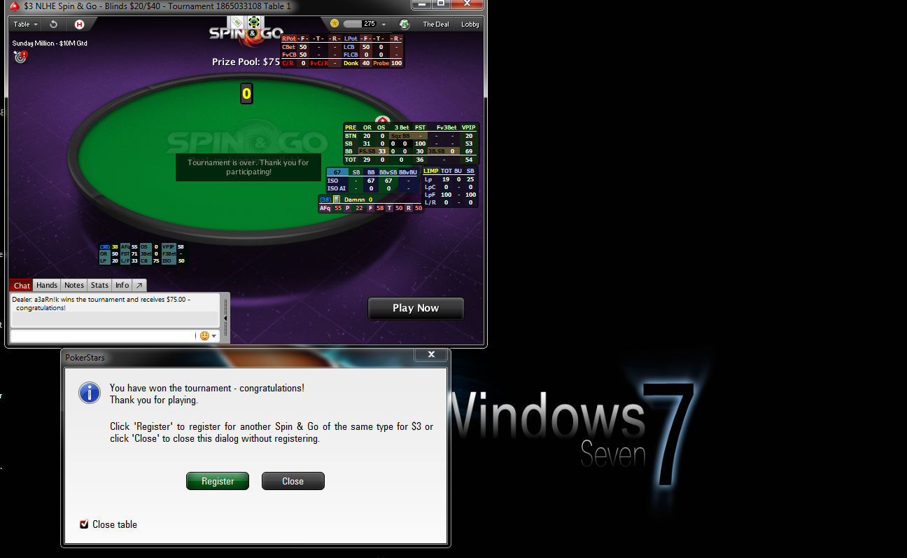 1.PokerStars - 10/20 NL (3 max) - Holdem - 3 players