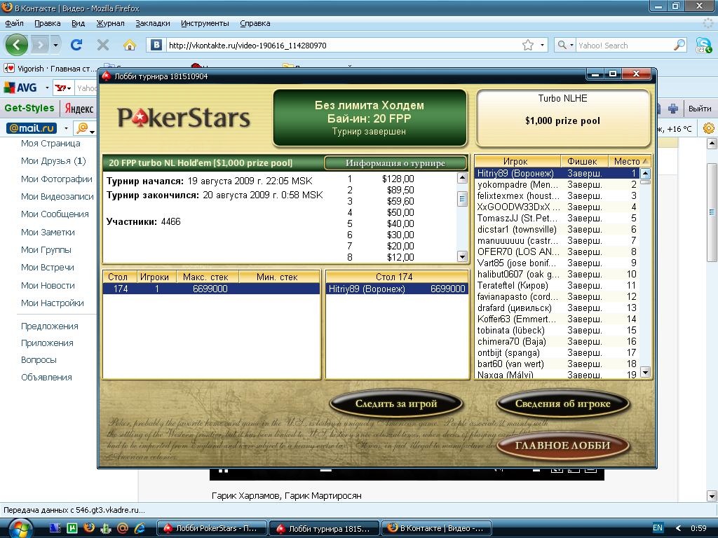 по профессии шабашник в покер играю с сентября 2007 года. с переменным успехом. переменным - потому что после крупных выигрышей и кэшаутов, слегка неадекватен наиболее ровные результаты, на мой взгляд, проявляю в МТТ этим и открою свой блог ... ![]() Мои успехи: 1. +29к на FTP -> /blogs/blog1408/post103583.html#p103583 рукм можно посмотреть тут /section9/topic4599.html Последний раз редактировалось EGOG 16 ноя 2009, 03:26, всего редактировалось 17 раз(а).