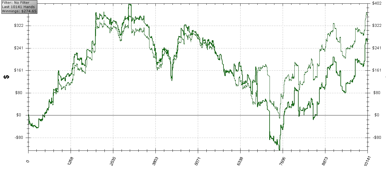 Играю на НЛ50 чуть более тайтово. 16/14 думаю пока оптимально для меня. После просмотра нескольких ВОДов diatty сменил подход к выбору стартовых рук. Научился наконец сбрасывать на префлопе доминируемые руки, значительно меньше стал коллировать вхолодную. Да уж, кто-то верно подметил на форуме, что дневники пишут или похвастаться, или когда проблемы. Отношусь ко второму типу постеров. Но не поплакаться, а для дисциплины. Такой уж я человек, что расслабляюсь, когда все хорошо. Поэтому дневник - способ держать себя в тонусе. Возвращаюсь к активному постированию (надолго ли? :)) ). Модераторы, перенесите плиз дневник в соответствующий раздел.