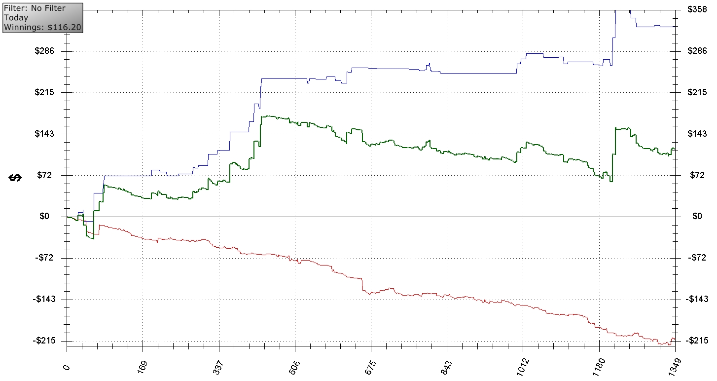 Точно! Результат утренней сессии -3БИ на НЛ50, и хотя недодача была в 1БИ от ГСЧ, но учитывая то, как играл, все могло сложиться гораздо печальней. Итак, публичный анализ и порка. 7.1. Опп 18/14, 3бет 4%б sq 4%, fold to 3b 75%, 4b range 1%. Full Tilt Poker $0.25/$0.50 Pot Limit Hold'em - 6 players - View hand 58038 The Official DeucesCracked.com Hand History Converter BTN: $27.20 SB: $34.60 BB: $50.75 UTG: $19.45 Hero (MP): $51.85 CO: $64.80 Pre Flop: ($0.75) Hero is MP with Q Q ![]() 1 fold, Hero raises to $1.75, 2 folds, SB calls $1.50, BB raises to $7, Hero raises to $20, 1 fold, BB raises to $50.75 all in, Hero calls $30.75 Flop: ($103.25) K 4 5 ![]() Turn: ($103.25) 2 ![]() River: ($103.25) K ![]() Final Pot: $103.25 BB shows A A (two pair, Aces and Kings)Hero shows Q Q (two pair, Kings and Queens)BB wins $100.25 (Rake: $3.00) Отчего-то мне сильно не понравилось, что опп сквизит. Для него ситуация идеальная для сквиза, и я решил, что он может это сделать шире обычного, поэтому дал тут 4бет. Колл без позы мне здесь не нравился. Ну и опп не испужался, и задвинул стэк. У меня оставалось 30 дол, и возможно стоило их сохранить. Даже АК у оппа здесь очень сомнителен. И только лишь при условии наличия в его диапазоне такого мува АК, мои дамы еще хоть как-то стояли, впритык по одсам. Против КК+, АК я имел 40%, а после его пуша мне оставалось доложить 30%. Но! АК там практически исключены. Против же КК+ у меня было 18% и розыгрыш конечно ужасен. Что осталось не ясным... Каковы же все таки наши действия после его сквиза? 1. Колл 2. Фолд 3. Небольшой 4бет и отвалиться на пуш ____________________________________________________________________________________ 7.2. Опп 44/36, СС 21%, агг 4/12/оо, fold to cbet 0, hands 110 Full Tilt Poker $0.25/$0.50 Pot Limit Hold'em - 6 players - View hand 58053 The Official DeucesCracked.com Hand History Converter MP: $39.30 CO: $59.20 BTN: $99.55 SB: $11.45 Hero (BB): $62.10 UTG: $50.75 Pre Flop: ($0.75) Hero is BB with A Q ![]() 2 folds, CO raises to $1.10, 2 folds, Hero raises to $3.55, CO calls $2.45 префлоп стандарт Flop: ($7.35) J 7 5 (2 players)Hero bets $5, CO calls $5 не самый лучший флоп для контбета. Влепил зачем то Turn: ($17.35) T (2 players)Hero bets $8, CO raises to $16, Hero calls $8 тут жесть. Влепил в десятку второй баррель зачем то, не знаю. Получил минрейз и вколол. ХЗ, прикинул, что есть кое какие ауты, на туза, короля, даму. Чек фолд конечно играть нужно было. River: ($49.35) 8 (2 players)Hero checks, CO bets $10.50, Hero folds Final Pot: $49.35 CO wins $46.90 (Rake: $2.45) 7.3. Опп нит, 19/7, fold to 3bet 0. Full Tilt Poker $0.25/$0.50 Pot Limit Hold'em - 6 players - View hand 58059 The Official DeucesCracked.com Hand History Converter BTN: $92.20 SB: $40.20 Hero (BB): $50.00 UTG: $49.25 MP: $41.50 CO: $133.35 Pre Flop: ($0.75) Hero is BB with Q Q ![]() UTG raises to $1.75, 4 folds, Hero raises to $5.50, UTG calls $3.75 Понимал, что диапазон рейза у оппа узок, но дать 3бет нужно было. Возможен ли тут колл против такого из соображений на сет? С другой стороны QQ неплохо стоят против такого диапазона. Flop: ($11.25) K J T (2 players)Hero checks, UTG bets $6.50, Hero calls $6.50 Опп очень часто попал бы в этот флоп. Если бы я поставил, мог бы получить рейз и пришлось бы скинуть. Так у меня OESD плюс ауты на даму. Поэтому решил играть чек/колл. Turn: ($24.25) T (2 players)Hero checks, UTG bets $8.50, Hero calls $8.50 десятка мало что поменяла. Опп поставил немного и я решил коллировать еще одну улицу. Здесь я уже твердо клал его на АК. У меня 20% эквити здесь, столько же нужно и заколлить. Прикинул, что у меня есть имплайды. River: ($41.25) J (2 players)Hero checks, UTG requests TIME, UTG bets $15, Hero folds Final Pot: $41.25 UTG wins $39.20 (Rake: $2.05) Опп сразу же написал в чат: У тебя QQ были Я ответил: А у тебя АК Оба рассмеялись 7.4. Опп 48/7, СС 34%, агр 1/2.2/3.5 Есть нотс на оппа, что часто глупо блефует на ривере. Full Tilt Poker $0.25/$0.50 Pot Limit Hold'em - 6 players - View hand 58067 The Official DeucesCracked.com Hand History Converter MP: $93.20 CO: $28.95 Hero (BTN): $50.75 SB: $49.50 BB: $36.80 UTG: $133.35 Pre Flop: ($0.75) Hero is BTN with J Q ![]() 2 folds, CO calls $0.50, Hero raises to $2.25, 2 folds, CO calls $1.75 стандартно изолировал Flop: ($5.25) A Q 4 (2 players)CO checks, Hero bets $3.50, CO calls $3.50 попал во вторую пару - контбет Turn: ($12.25) 2 (2 players)CO checks, Hero checks потконтроль River: ($12.25) 