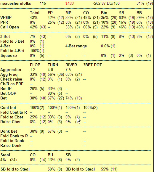 Не знаю чем это объяснить, но сегодня столкнулся с очень-очень агрессивной игрой на НЛ100. Разумеется, и до сегодняшнего дня игра здесь ознаменовывалась повышенной агрессией, но сегодня это было что-то. С таким еще сталкиваться не приходилось. Рыбы отчего-то не было совсем. Зато вот регов с НЛ200 была масса. И вот эти самые реги дичайщую агрессию демонстрировали. Что-то подобное я начинаю исполнять, когда порой иду на НЛ50. Игроки, на которых у меня неплохие базы, и которые играют 22/20 сегодня рвали в 35/30 с трибетами по 15%.
