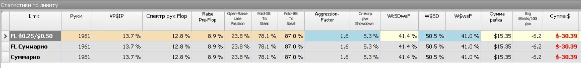 вот статистика по сегодняшним рукам :
