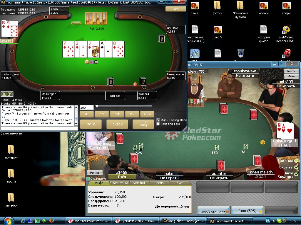 Привет мой дневничок,хочу поделиться с тобой несколькими мыслями,первая из них,насколько сильно может повлиять одна ошибка в турнире?я лично думаю,что все зависит от стадиии турнира,вот к примеру сегодня игшрал релоуд очередной на старсах осталось около 500 человек,очно не помню,а призы с 400,увидев на руках АД и один лимп на столе,у меня было две возможности их разыграть или сразу прихнуть и так сказать выставиться или играть по флопу и постараться дотнуть до второго билета,я выбрал первое и попал на АК,самое интересное что если бы я выбрал первое и дал бы Оленьчика на флопе он скорее всего упал,это конечно нельзя назвать большой ошибкой но все же