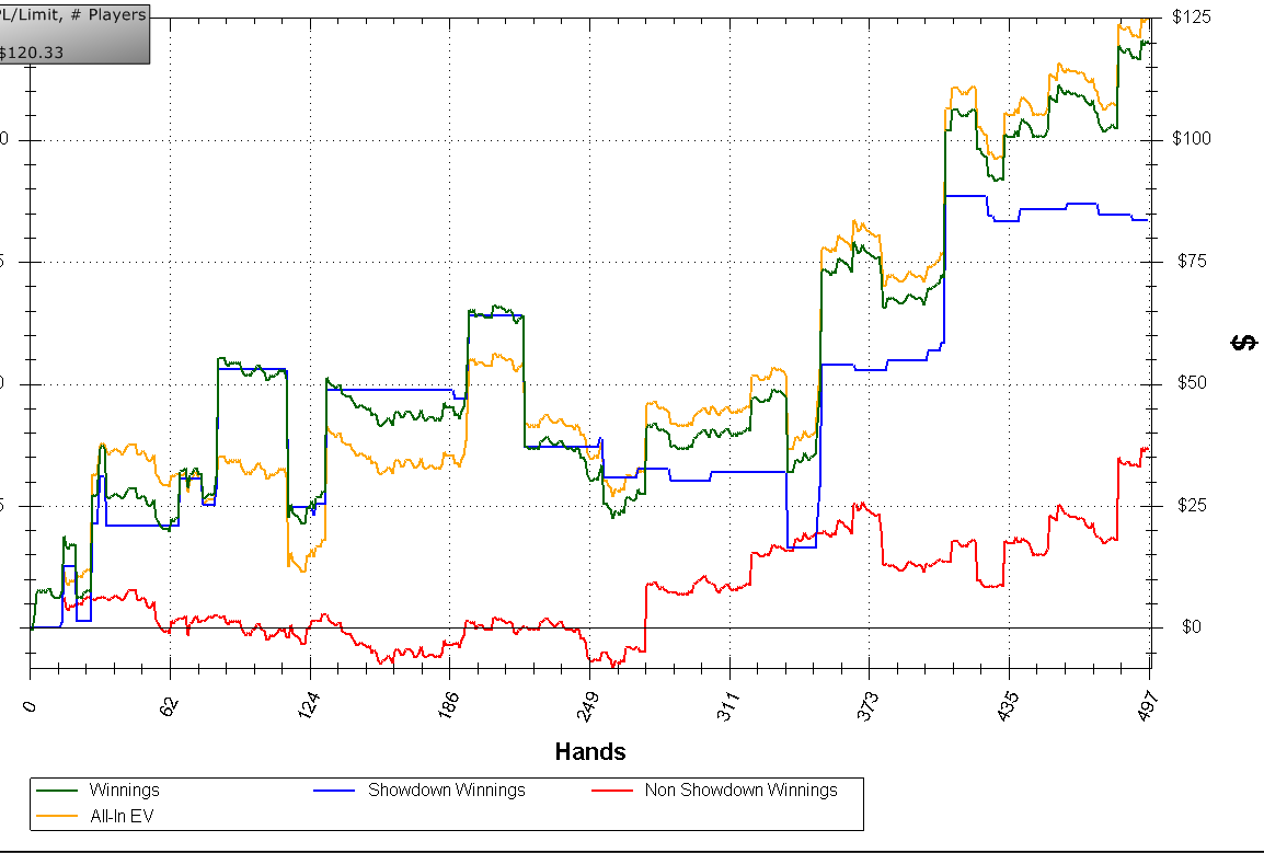 No Limit Holdem Tournament PokerStars 8 Players Hand Conversion Powered by weaktight.com $8.00+$0.80 Stacks: UTG (591k) 49bb UTG+1 (439k) 37bb MP1 (217k) 18bb MP2 (489k) 41bb CO (316k) 26bb BTN (305k) 25bb Glehni Loss (SB) (444k) 37bb BB (445k) 37bb Blinds: 6k/12k Ante 1.5k Pre-Flop: (30k, 8 players) Glehni Loss is SB 4 folds, CO raises to 36k, 1 fold, Glehni Loss raises to 96k, 1 fold, CO calls 60k Flop: (216k, 2 players) Glehni Loss bets 121k, CO goes all-in 218k, Glehni Loss calls 97k Turn: (652k, 2 players, 1 all-in) River: (652k, 2 players, 1 all-in) Final Pot: 652k CO shows three of a kind, Nines Glehni Loss shows a pair of Kings CO wins 652k (net +337k) Glehni Loss lost 316k |