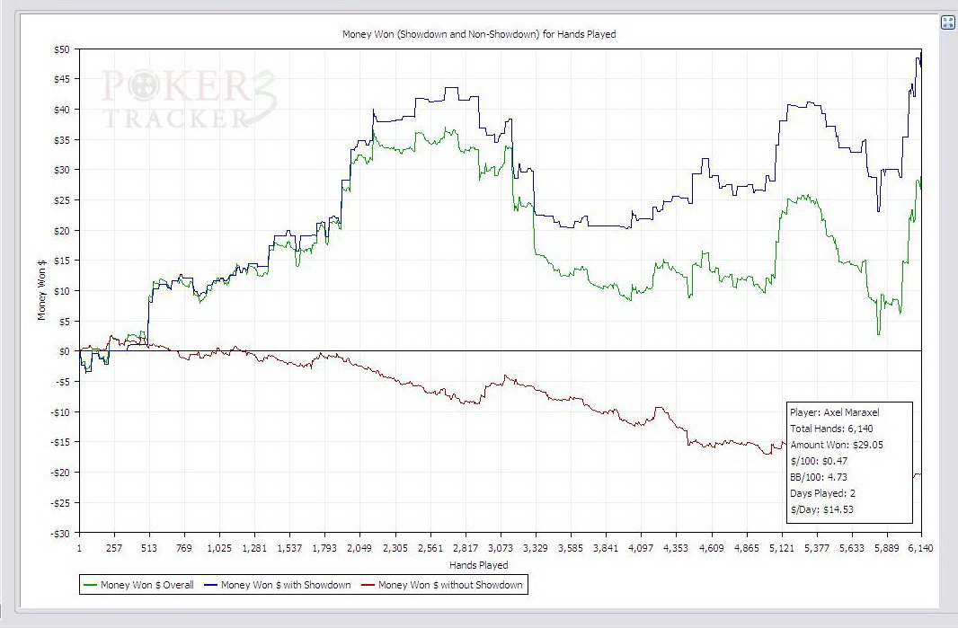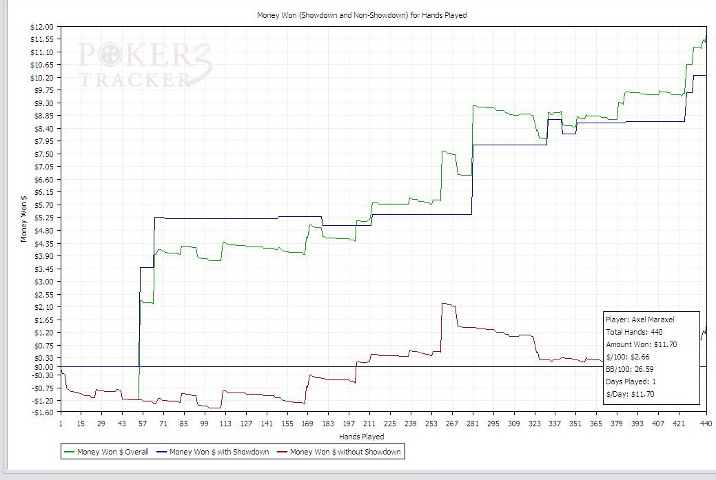 И вот настала ночь и появился доступ в интернет! Задача - отыграть 400 рук (не хватало до 40К в ноябре) и лечь спать! Отыграть, не ради планки в 40К, конечно, отыграть в плюсик при этом, тем более, что три дня играл уже в плюс... :cool: