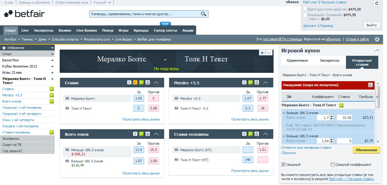 oksaxa,что-то я недопонял с биржей ставок на Бэтфаире...Влепил туда две ставки.Один матч закончился(ставка как бы сыграла),а мне просто вернули ставку :eek: .Объясни,пожалуйста,как выводить деньги,а то я,пока разобрался где нормальные ставки,влепил и на Италию-Россию...