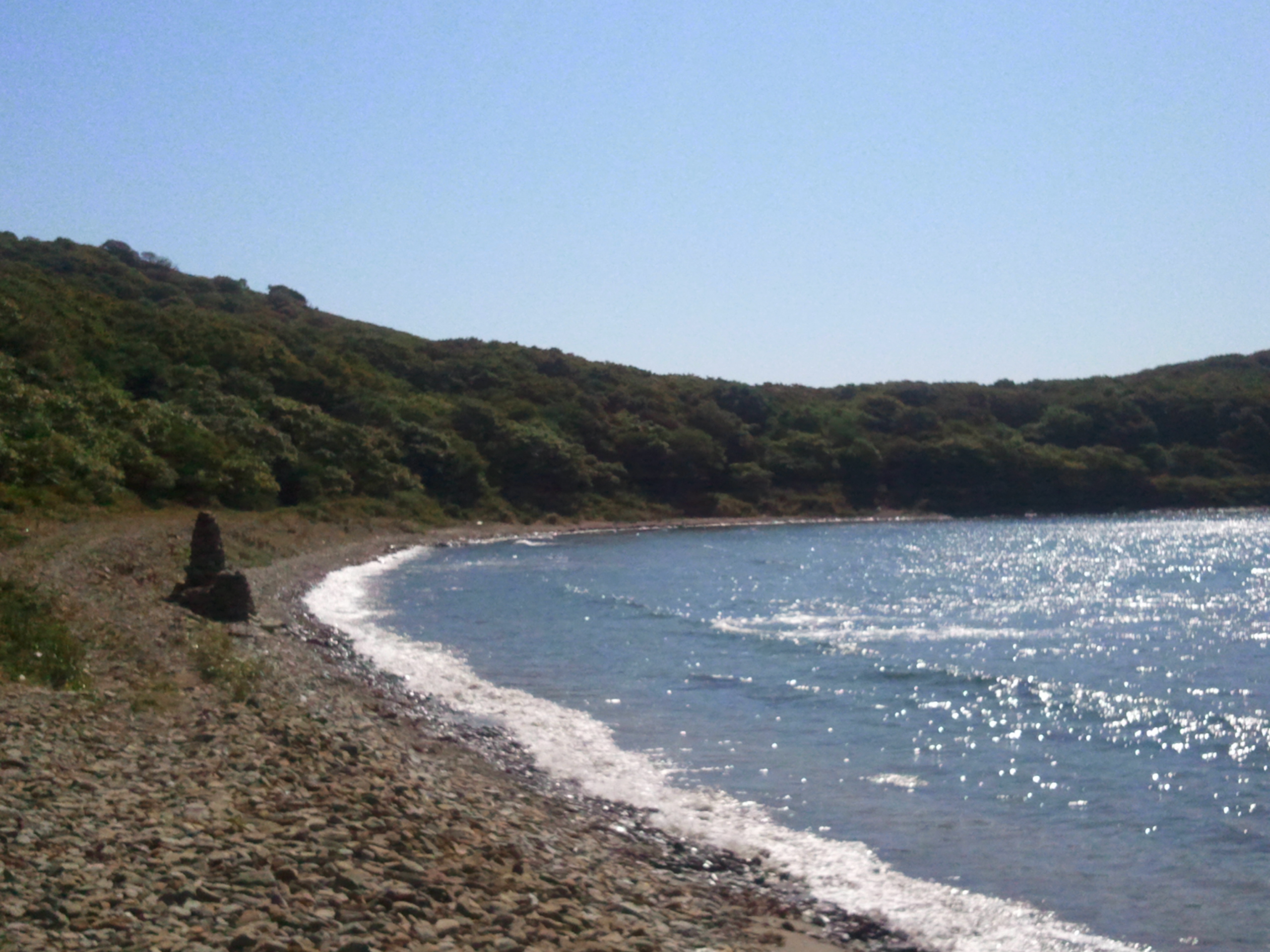 Хочу немного рассказать о последней фотке. Там в зелени стоят домики (они не видны), а вот на берегу, видно такое фаллическое сооружение из камней.