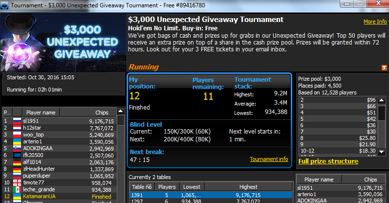 пихалово, конечно, но там и после реги в ситауте почти всегда 30 центов тебе капнет на счёт. а если играть, то можно и чуть больше втащить. сегодня почти 20ку вот выиграл+майку от рума (там всему топ50 дают какой-то приз от рума: майка/кепка/колода/10$ и тд). билеты на шару раздают: и так дарят, и после крута их спина они выпадают почти всегда (дают раз в сутки)