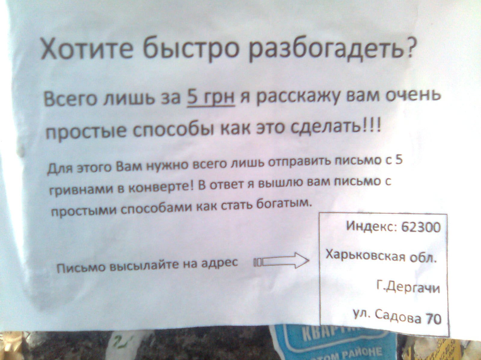 unspeak, ведать правду говорят о "дураках и дорогах" наверное только у нас народ такой доверчивый ))