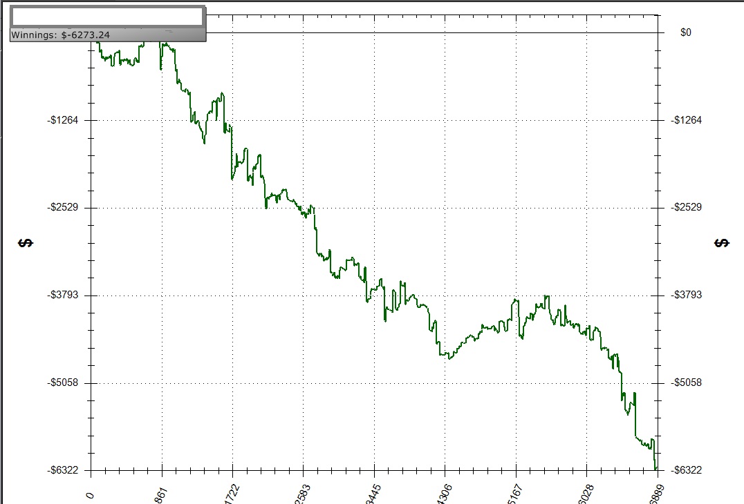 У тебя еще график такой скачкообразный, как будто после слива 1 большого банка, буквально через несколько сдач, сливался следующий. Видимо с психологией проблемы..
