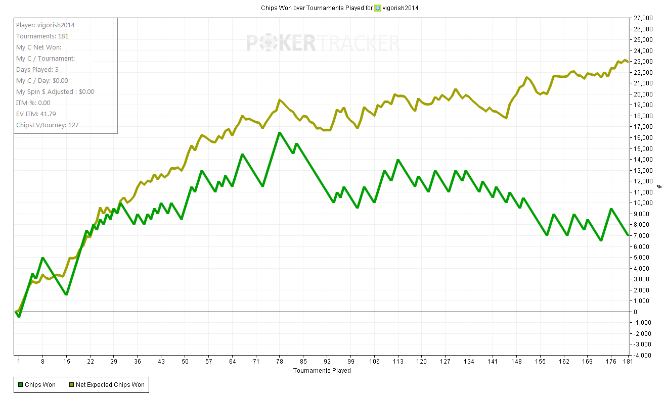 Вот график в фишках, тут всё подряд в основном лимиты 10-20 евро, и чуть по 50. Очевидно разрываю поле. Поиграл выходные тут, не могу выиграть у никакущих игроков, подставы бедбиты и т.п. Частенько так когда на счёте маленькая сумма) Посмотрим возможно запущу с января тяжелую артиллерию в виде депозита в несколько тысяч евро. А сейчас осталось всего 400 евро на счёте. Хотя само собой в этом руме, в новой сети, я уже итак в приличном плюсе, выиграл две путевки, и ещё что-то вывел, плюс часть денег наменял игрокам ваучерами. Посмотрим, может быть и сразу депну побольше, надоедает эта песочница по 10-20. Наверное по 50 можно покатать и по 20, хотя лимиты низковаты для меня, по сравнению со старзами. Буду думать. |
