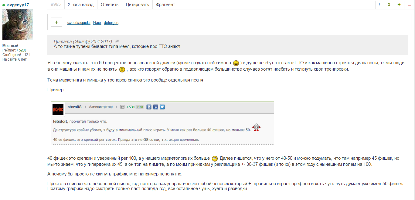 Некоторые коллеги с лимита, зачем-то развозят какое-то гавно по форумам, я 10 лет в покере, в спинах с момента появления, все лимиты бил очень уверенно всегда.