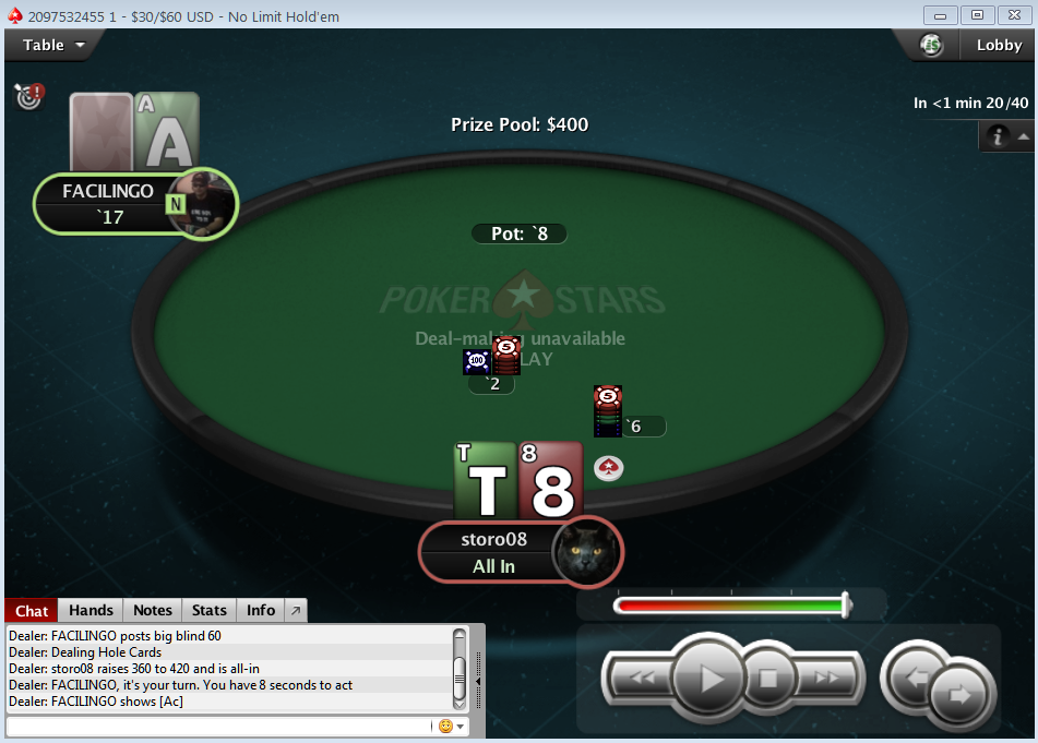 PokerStars - 20/40 NL (3 max) - Holdem - 2 players