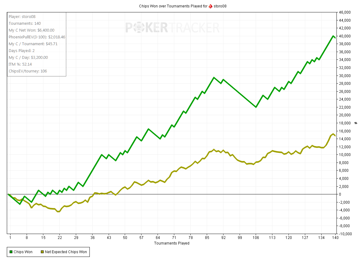 Весело-весело катаем. PokerStars - 10/20 NL (3 max) - Holdem - 2 players Hand converted by PokerTracker 4 qzpm1982 (SB): 34 BB storo08 (BB): 41 BB qzpm1982 posts SB 0.5 BB, storo08 posts BB 1 BB Pre Flop: (pot: 1.5 BB) storo08 has 5 2 qzpm1982 calls 0.5 BB, storo08 raises to 7 BB, qzpm1982 calls 6 BB Flop: (14 BB, 2 players) 8 3 A storo08 bets 4 BB, qzpm1982 raises to 8 BB, storo08 calls 4 BB Turn: (30 BB, 2 players) 8 storo08 checks, qzpm1982 checks River: (30 BB, 2 players) 4 storo08 bets 26 BB and is all-in, qzpm1982 calls 19 BB and is all-in storo08 shows 5 2 (Straight, Five High)(Pre 33%, Flop 18%, Turn 9%) qzpm1982 shows A 7 (Two Pair, Aces and Eights)(Pre 67%, Flop 82%, Turn 91%) storo08 wins 68 BB Нинияй полез исполнять, в жизни не поверю, что у него есть такая линия с вэлью рукой на повороте. PokerStars - 10/20 NL (3 max) - Holdem - 3 players Hand converted by PokerTracker 4 Flawless432 (SB): 23.5 BB NININI12345 (BB): 22.3 BB storo08 (BTN): 29.2 BB Flawless432 posts SB 0.5 BB, NININI12345 posts BB 1 BB Pre Flop: (pot: 1.5 BB) storo08 has 7 5 storo08 raises to 2 BB, fold, NININI12345 calls 1 BB Flop: (4.5 BB, 2 players) T 5 3 NININI12345 checks, storo08 bets 1.5 BB, NININI12345 calls 1.5 BB Turn: (7.5 BB, 2 players) 8 NININI12345 checks, storo08 bets 5.5 BB, NININI12345 raises to 11 BB, storo08 calls 5.5 BB River: (29.5 BB, 2 players) 7 NININI12345 checks, storo08 bets 14.7 BB and is all-in, NININI12345 calls 7.8 BB and is all-in storo08 shows 7 5 (Two Pair, Sevens and Fives)(Pre 43%, Flop 79%, Turn 80%) NININI12345 shows 6 7 (One Pair, Sevens)(Pre 57%, Flop 21%, Turn 20%) storo08 wins 45.1 BB Лопух решил отдать стак PokerStars - 15/30 NL (3 max) - Holdem - 3 players Hand converted by PokerTracker 4 Samiradober (BTN): 20.97 BB mo1831 (SB): 10.17 BB storo08 (BB): 18.87 BB mo1831 posts SB 0.5 BB, storo08 posts BB 1 BB Pre Flop: (pot: 1.5 BB) storo08 has 7 Q fold, mo1831 calls 0.5 BB, storo08 checks Flop: (2 BB, 2 players) 2 Q 2 mo1831 bets 2 BB, storo08 calls 2 BB Turn: (6 BB, 2 players) 9 mo1831 bets 6 BB, storo08 raises to 12 BB, mo1831 calls 1.17 BB and is all-in River: (20.33 BB, 2 players) T mo1831 shows 3 8 (One Pair, Twos)(Pre 35%, Flop 1%, Turn 0%) storo08 shows 7 Q (Two Pair, Queens and Twos)(Pre 65%, Flop 99%, Turn 100%) storo08 wins 20.33 BB Хирокольчик скучненький. PokerStars - 30/60 NL (3 max) - Holdem - 2 players Hand converted by PokerTracker 4 BetsOnAce (BB): 12.33 BB storo08 (SB): 12.67 BB storo08 posts SB 0.5 BB, BetsOnAce posts BB 1 BB Pre Flop: (pot: 1.5 BB) storo08 has T 8 storo08 calls 0.5 BB, BetsOnAce checks Flop: (2 BB, 2 players) 4 K 4 BetsOnAce checks, storo08 checks Turn: (2 BB, 2 players) 3 BetsOnAce checks, storo08 checks River: (2 BB, 2 players) J BetsOnAce bets 1.27 BB, storo08 calls 1.27 BB BetsOnAce shows 9 2 (One Pair, Fours)(Pre 32%, Flop 30%, Turn 17%) storo08 shows T 8 (One Pair, Fours)(Pre 68%, Flop 70%, Turn 83%) storo08 wins 4.53 BB |