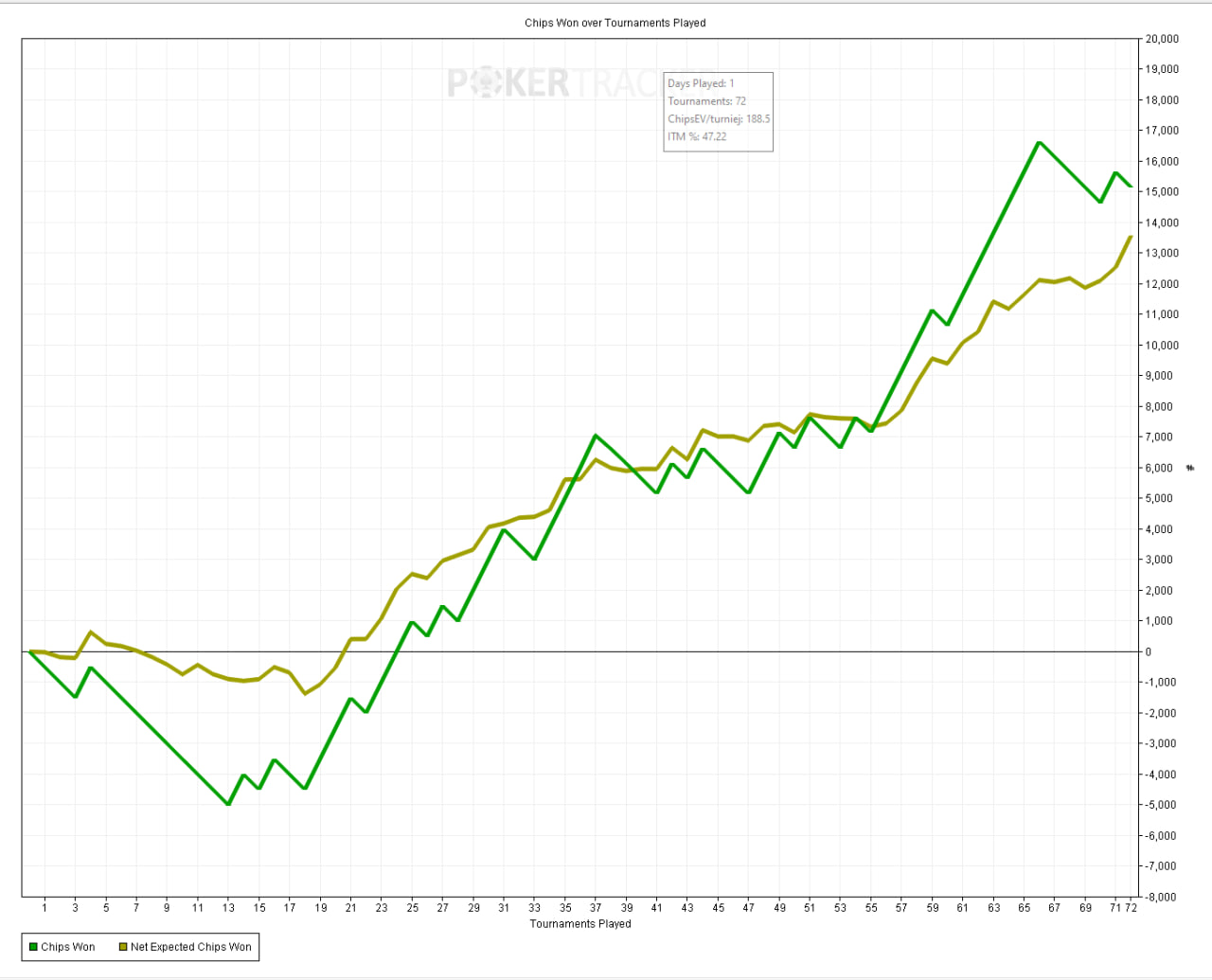 Два турнира без топ-мест, но также в верхней части турнирной таблицы. Понятно, что где-то неплохо заходило, в эту игру должны быть и полные провалы, в виду дисперсии, но и составы вживую гораздо слабее.