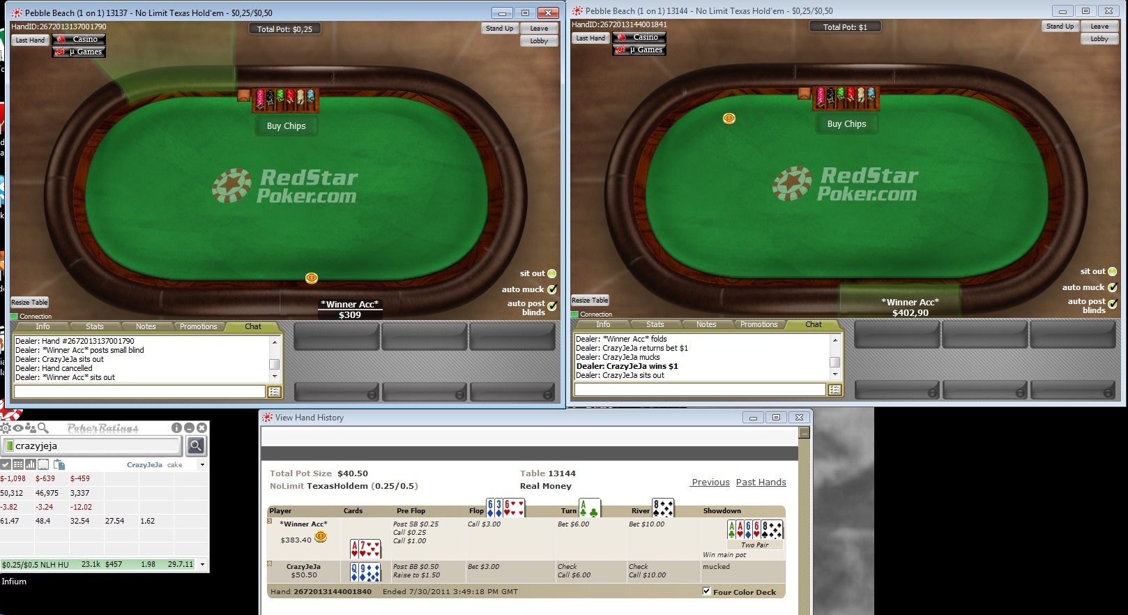 Скрин прилагается,обратите внимание на посл.раздачу и на стаки NL50. :)))