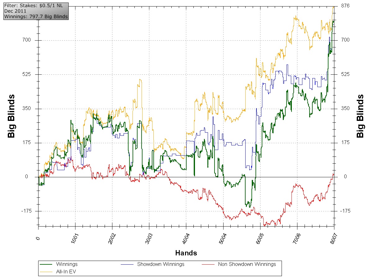 Отыграл очередную сессию,на этот раз 2к рук,выигрыш составил 4 доллара,хотя по EV +300.5$ :facepalm: :(