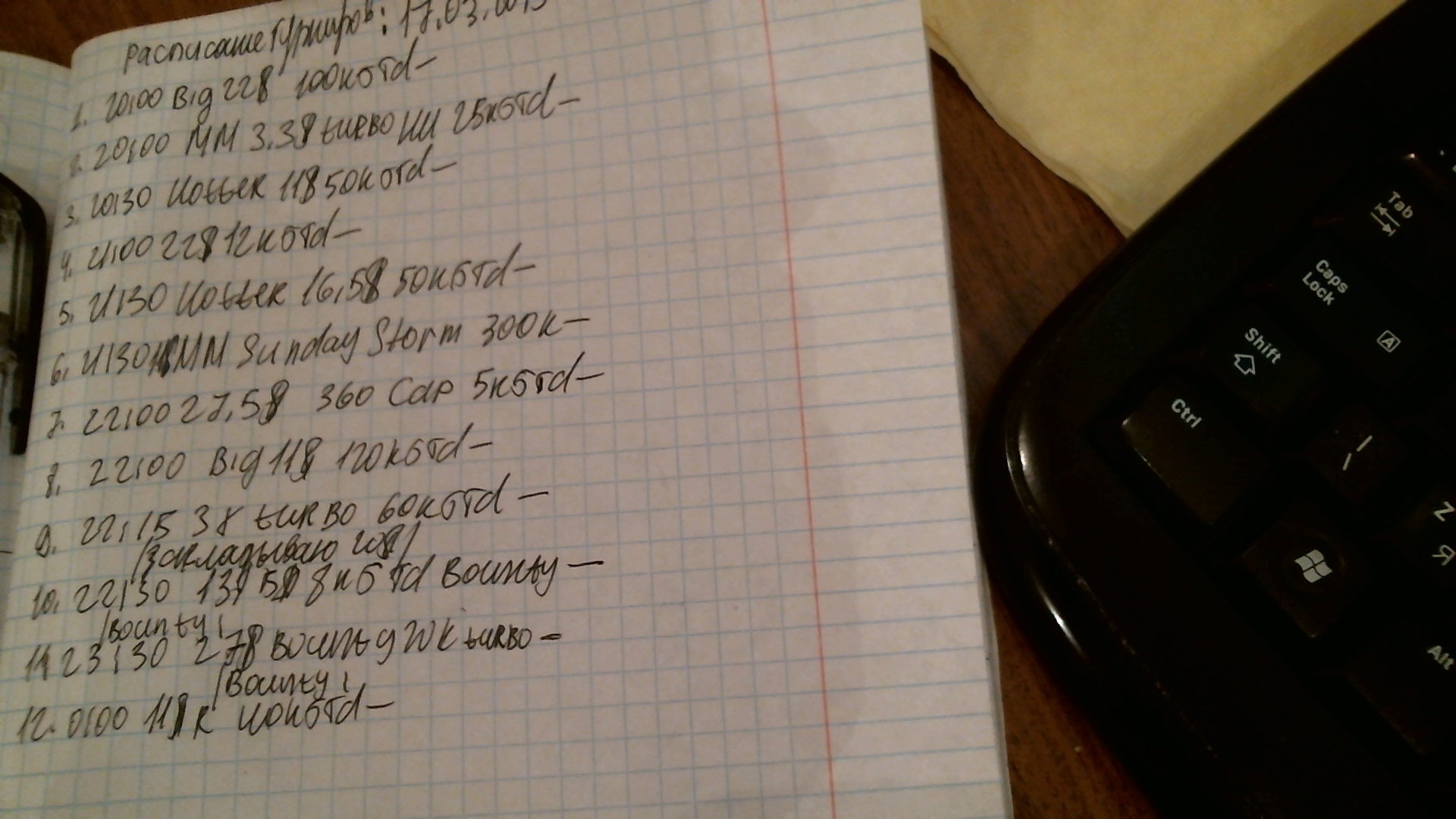 Составил рапсисание турниров на завтра.Начну в 20-00,последний по расписанию турнир в 0-00мск,если буду к тому времени себя хорошо чувствовать,то сяду может ещё парочку.