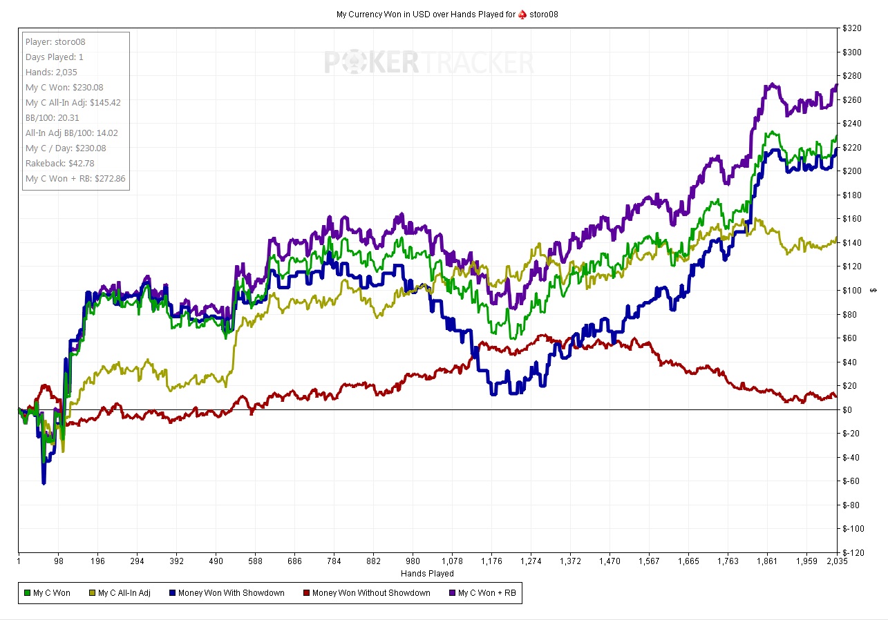 Сегодня особого настроя на игру не было. Но решил всё-таки поиграть, играл nl100-200-50, прилично недобрал. Но под конец второй сессии всё отбил и чуть нажил.