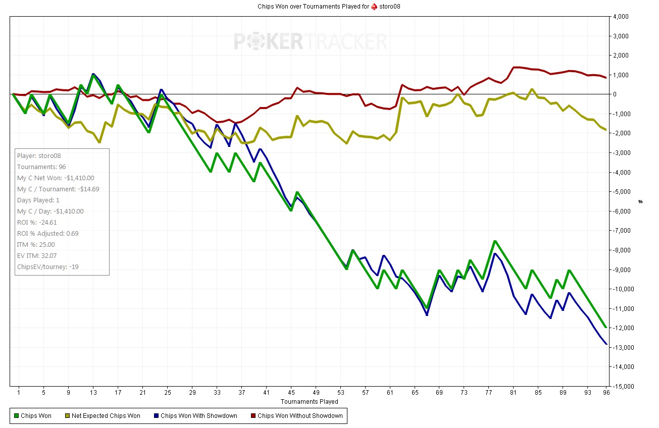 Классический подвыпереверт на ривере. С дамой также могу сыграть есс-но. PokerStars - $57+$3|30/60 NL (3 max) - Holdem - 2 players Hand converted by PokerTracker 4 KajtiPajti (SB): 12.97 BB storo08 (BB): 12.03 BB KajtiPajti posts SB 0.5 BB, storo08 posts BB 1 BB Pre Flop: (pot: 1.5 BB) storo08 has 6 3 KajtiPajti calls 0.5 BB, storo08 checks Flop: (2 BB, 2 players) T J K storo08 checks, KajtiPajti checks Turn: (2 BB, 2 players) A storo08 checks, KajtiPajti checks River: (2 BB, 2 players) 4 storo08 checks, KajtiPajti bets 1 BB, storo08 raises to 2 BB, fold storo08 wins 4 BB Опп был похож на рега, потому отметил. Это надо так умудрится сыграть сильно. PokerStars - $57+$3|20/40 NL (3 max) - Holdem - 2 players Hand converted by PokerTracker 4 beigale777 (BB): 20.35 BB storo08 (SB): 17.15 BB storo08 posts SB 0.5 BB, beigale777 posts BB 1 BB Pre Flop: (pot: 1.5 BB) storo08 has K Q storo08 calls 0.5 BB, beigale777 checks Flop: (2 BB, 2 players) Q 8 9 beigale777 checks, storo08 bets 1.5 BB, beigale777 calls 1.5 BB Turn: (5 BB, 2 players) 2 beigale777 checks, storo08 bets 3.5 BB, beigale777 calls 3.5 BB River: (12 BB, 2 players) A beigale777 checks, storo08 bets 11.15 BB and is all-in, beigale777 calls 11.15 BB storo08 shows K Q (One Pair, Queens)(Pre 65%, Flop 64%, Turn 70%) beigale777 shows 5 2 (One Pair, Twos)(Pre 35%, Flop 36%, Turn 30%) storo08 wins 34.3 BB Турик за полторы тысячи, первая раздача, опп рег с которым сыграл сотни рук. Понятно ривер пуш на тонкий добор с 10-ки. Опп чуть поколебался и кольнул. Далее был не сложный хедзап с приятным перевесом по стекам. PokerStars - $57+$3|10/20 NL (3 max) - Holdem - 3 players Hand converted by PokerTracker 4 $@NY@2312 (BTN): 25 BB storo08 (SB): 25 BB pokerzysta90 (BB): 25 BB storo08 posts SB 0.5 BB, pokerzysta90 posts BB 1 BB Pre Flop: (pot: 1.5 BB) storo08 has Q 8 fold, storo08 raises to 2.3 BB, pokerzysta90 calls 1.3 BB Flop: (4.6 BB, 2 players) 5 Q T storo08 bets 2 BB, pokerzysta90 calls 2 BB Turn: (8.6 BB, 2 players) 5 storo08 bets 5.5 BB, pokerzysta90 calls 5.5 BB River: (19.6 BB, 2 players) 6 storo08 bets 15.2 BB and is all-in, pokerzysta90 calls 15.2 BB and is all-in storo08 shows Q 8 (Two Pair, Queens and Fives)pokerzysta90 shows T 7 (Two Pair, Tens and Fives)storo08 wins 50 BB Пришла идея х240, прокрутить в реплеере хендхистори и сделать небольшое видео как шла эта мега битва за 12 кусков. Постараюсь как-нибудь сделать, чтоб было интересно и при этом не выдавать своих секретов. Ну и освежу память по этому спину. Пока до начала апреля нужно катать как и планировал в темпе 160 спинов в сутки. А там может и выходной сделаю в районе 1 апреля. ![]() |
