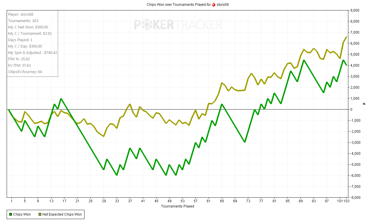 PokerStars - $95+$5|10/20 NL (3 max) - Holdem - 3 players Hand converted by PokerTracker 4 josemyj2013 (BB): 20 BB finsk67 (BTN): 22 BB storo08 (SB): 33 BB storo08 posts SB 0.5 BB, josemyj2013 posts BB 1 BB Pre Flop: (pot: 1.5 BB) storo08 has T 9 finsk67 calls 1 BB, storo08 calls 0.5 BB, josemyj2013 raises to 2 BB, finsk67 calls 1 BB, storo08 calls 1 BB Flop: (6 BB, 3 players) 2 6 7 storo08 checks, josemyj2013 bets 3 BB, fold, storo08 raises to 8.5 BB, josemyj2013 calls 5.5 BB Turn: (23 BB, 2 players) Q storo08 bets 15.2 BB, josemyj2013 calls 9.5 BB and is all-in River: (42 BB, 2 players) Q storo08 shows T 9 (One Pair, Queens)(Pre 27%, Flop 26%, Turn 16%) josemyj2013 shows J 9 (One Pair, Queens)(Pre 73%, Flop 74%, Turn 84%) josemyj2013 wins 42 BB И мне сегодня что-то докатывается. PokerStars - $95+$5|15/30 NL (3 max) - Holdem - 2 players Hand converted by PokerTracker 4 NERINEJA85 (BB): 11.33 BB storo08 (SB): 38.67 BB storo08 posts SB 0.5 BB, NERINEJA85 posts BB 1 BB Pre Flop: (pot: 1.5 BB) storo08 has 3 2 storo08 calls 0.5 BB, NERINEJA85 checks Flop: (2 BB, 2 players) A 4 8 NERINEJA85 checks, storo08 bets 1 BB, NERINEJA85 calls 1 BB Turn: (4 BB, 2 players) 6 NERINEJA85 checks, storo08 bets 2.63 BB, NERINEJA85 calls 2.63 BB River: (9.27 BB, 2 players) 5 NERINEJA85 checks, storo08 bets 6.93 BB, NERINEJA85 calls 6.7 BB and is all-in storo08 shows 3 2 (Straight, Six High)(Pre 33%, Flop 19%, Turn 9%) NERINEJA85 shows 8 9 (One Pair, Eights)(Pre 67%, Flop 81%, Turn 91%) storo08 wins 22.67 BB Интересный субботний трибетпуш. PokerStars - $95+$5|15/30 NL (3 max) - Holdem - 2 players Hand converted by PokerTracker 4 storo08 (SB): 32.33 BB allin780915 (BB): 17.67 BB storo08 posts SB 0.5 BB, allin780915 posts BB 1 BB Pre Flop: (pot: 1.5 BB) storo08 has Q K storo08 raises to 2 BB, allin780915 raises to 17.67 BB and is all-in, storo08 calls 15.67 BB Flop: (35.33 BB, 2 players) 9 A 7 Turn: (35.33 BB, 2 players) 3 River: (35.33 BB, 2 players) Q allin780915 shows 3 2 (One Pair, Threes)(Pre 32%, Flop 24%, Turn 86%) storo08 shows Q K (One Pair, Queens)(Pre 68%, Flop 76%, Turn 14%) storo08 wins 35.33 BB Выиграл 2000$. Пока перерыв, но есть мысль и зафиксировать положительный результат, после недели без побед. |