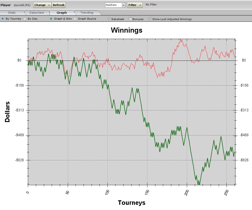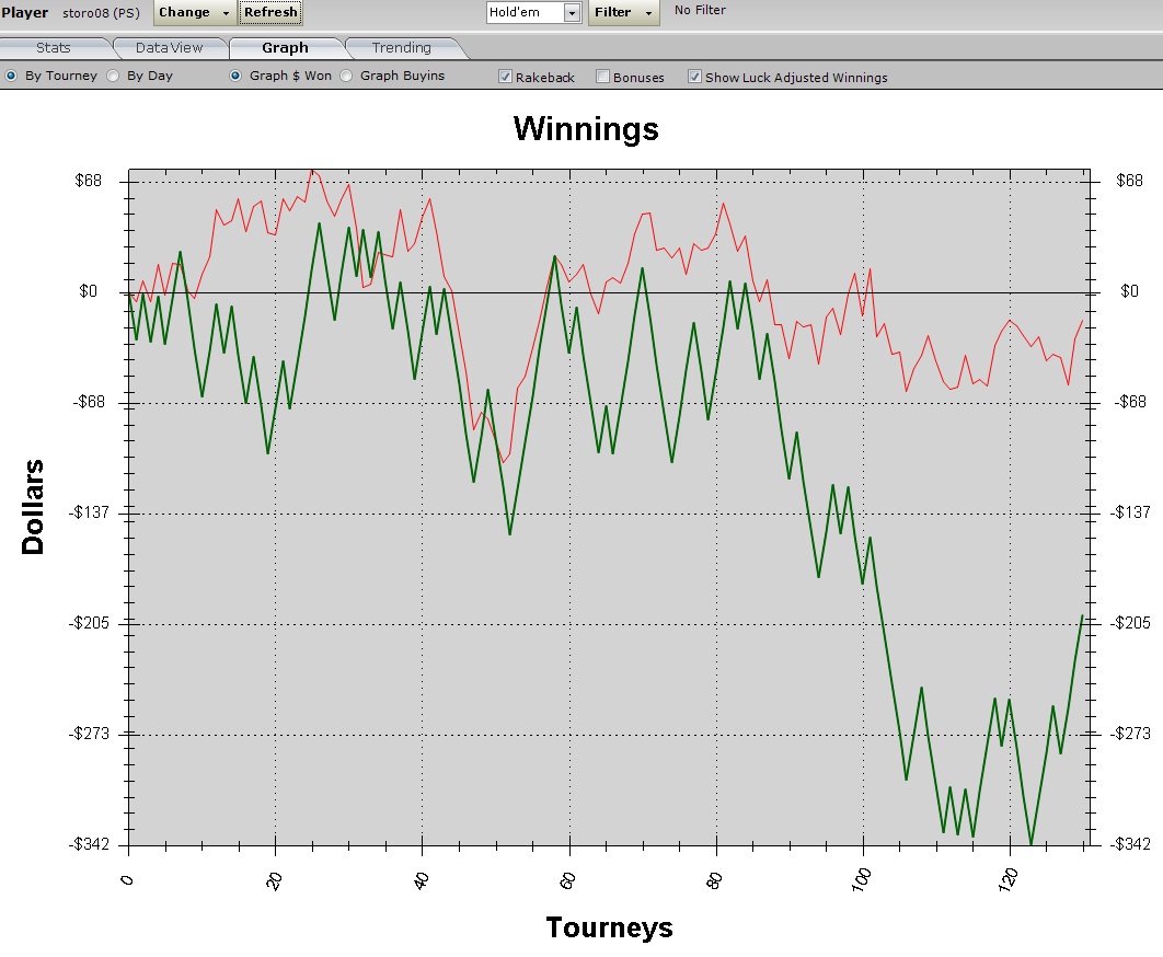 жирных фишей удалось плюсануть мелочь.Выложу несколько раздач. Капкан под фиша,с топ парой. Grabbed byHoldem Manager NL Holdem $30(BB) Replayer ($285) Hero ($715) Dealt to Hero 8 K Hero raises to $60, calls $30 FLOP ($120) 6 K 6 checks, Hero bets $30, calls $30 TURN ($180) 6 K 6 6 checks, Hero checks RIVER ($180) 6 K 6 6 5 bets $195 (AI), Hero calls $195 shows J 3 (Pre 40%, Flop 0.7%, Turn 1.1%) Hero shows 8 K (Pre 60%, Flop 99.3%, Turn 98.9%) Hero wins $570 Тонкий добор и очень тонкий колл "вникуда"от оппа. Grabbed byHoldem Manager NL Holdem $20(BB) Replayer Hero ($520) ($480) Dealt to Hero T 7 calls $10, Hero checks FLOP ($40) 9 A T Hero checks, bets $20, Hero calls $20 TURN ($80) 9 A T 8 Hero checks, checks RIVER ($80) 9 A T 8 7 Hero bets $40, calls $40 shows 2 K (Pre 51%, Flop 14.8%, Turn 6.8%) Hero shows T 7 (Pre 49%, Flop 85.2%, Turn 93.2%) Hero wins $160 Первая рука матча,чё ещё делать на флопе с натсом в виде:двух оверкарт и гатшота? Grabbed byHoldem Manager NL Holdem $20(BB) Replayer Hero ($500) ($500) Dealt to Hero J K calls $10, Hero raises to $60, calls $40 FLOP ($120) 9 T 9 Hero bets $50, raises to $120, Hero raises to $440 (AI), folds Hero shows J K Hero wins $360 Решил заманить.Второй кон с тем же оппом. Grabbed byHoldem Manager NL Holdem $20(BB) Replayer ($540) Hero ($460) Dealt to Hero A 5 Hero calls $10, raises to $540 (AI), Hero calls $440 (AI) FLOP ($920) 3 7 7 TURN ($920) 3 7 7 5 RIVER ($920) 3 7 7 5 K shows 4 J (Pre 40%, Flop 21.7%, Turn 15.9%) Hero shows A 5 (Pre 60%, Flop 78.3%, Turn 84.1%) Hero wins $920 ***** Grabbed byHoldem Manager NL Holdem $20(BB) Replayer ($710) Hero ($290) Dealt to Hero K A Hero calls $10, raises to $700, Hero calls $270 (AI) FLOP ($580) 5 8 2 TURN ($580) 5 8 2 9 RIVER ($580) 5 8 2 9 J shows 2 9 (Pre 32%, Flop 75.4%, Turn 100.0%) Hero shows K A (Pre 68%, Flop 24.6%, Turn 0.0%) wins $580 Итог дня: +38$ vpp: +111 По vpp набор идёт плохо,так как играю мало+заболел+битва в Лотосе,думаю как буду себя оптимально чувствовать поиграю плотно недельку кэш и догоню. По поводу битвы все вылетели с команды или сразу или в середине.Турнира с более плохой структурой я не играл очень давно.Всего за турнир сыграл 1 раздачу: с 15бб поставил 77 в 88.до неё минут 15-20 провыкидывал и стек стал 15бб. Ну ничего,первый день игры только.Вся борьба впереди.Сегодня турнир с 3к стеком и уровнями по 10 минут,тут уже более долгое время будет можно,что-то сделать. Ну а вообще я ставку делаю на последние самые турниры-в них будет и народу меньше,структура лучше,а в тех что сейчас идут и фриролы,тут тоже будем стараться,возьмем какие-то очки в них и ладно. ![]() |