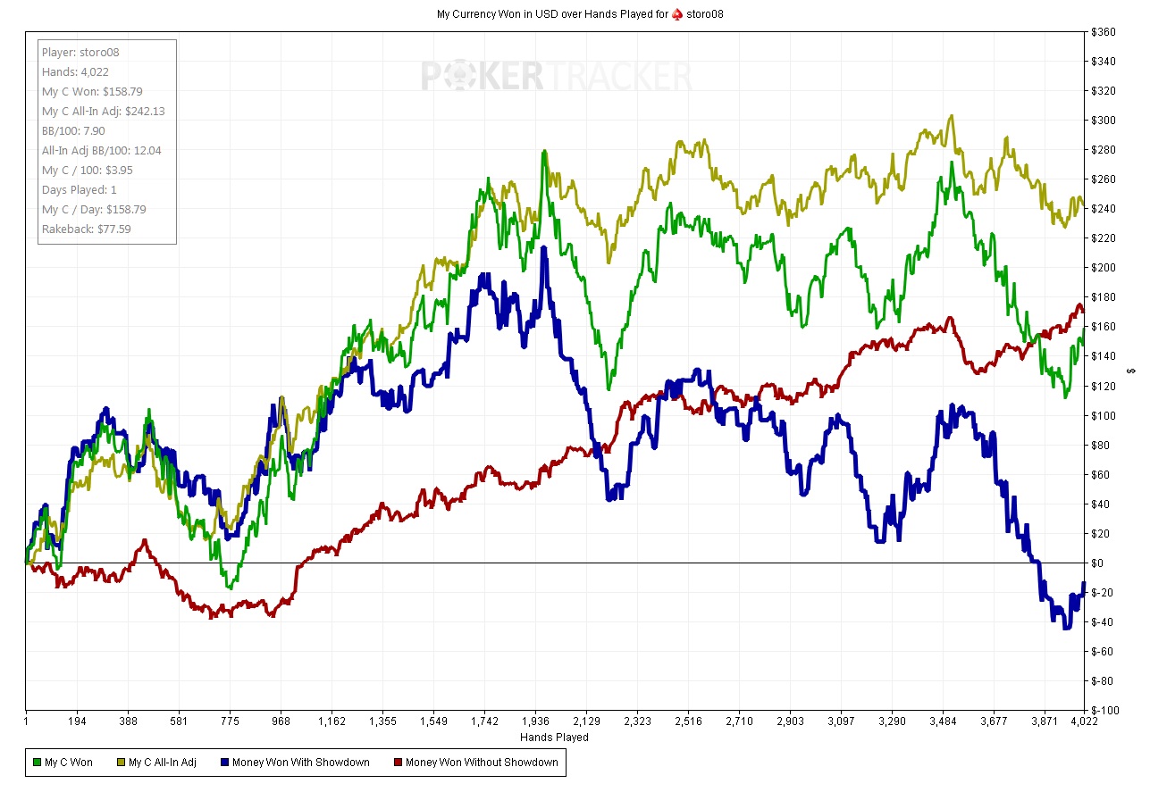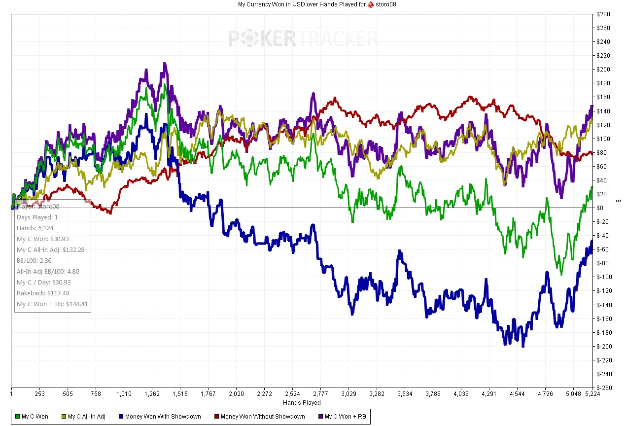 SB: 104.1 BB (VPIP: 90.83, PFR: 63.30, 3Bet Preflop: 25.00, Hands: 117)