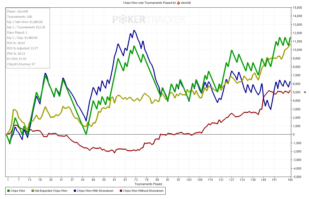 Классический подвыпереверт на ривере. С дамой также могу сыграть есс-но. PokerStars - $57+$3|30/60 NL (3 max) - Holdem - 2 players Hand converted by PokerTracker 4 KajtiPajti (SB): 12.97 BB storo08 (BB): 12.03 BB KajtiPajti posts SB 0.5 BB, storo08 posts BB 1 BB Pre Flop: (pot: 1.5 BB) storo08 has 6 3 KajtiPajti calls 0.5 BB, storo08 checks Flop: (2 BB, 2 players) T J K storo08 checks, KajtiPajti checks Turn: (2 BB, 2 players) A storo08 checks, KajtiPajti checks River: (2 BB, 2 players) 4 storo08 checks, KajtiPajti bets 1 BB, storo08 raises to 2 BB, fold storo08 wins 4 BB Опп был похож на рега, потому отметил. Это надо так умудрится сыграть сильно. PokerStars - $57+$3|20/40 NL (3 max) - Holdem - 2 players Hand converted by PokerTracker 4 beigale777 (BB): 20.35 BB storo08 (SB): 17.15 BB storo08 posts SB 0.5 BB, beigale777 posts BB 1 BB Pre Flop: (pot: 1.5 BB) storo08 has K Q storo08 calls 0.5 BB, beigale777 checks Flop: (2 BB, 2 players) Q 8 9 beigale777 checks, storo08 bets 1.5 BB, beigale777 calls 1.5 BB Turn: (5 BB, 2 players) 2 beigale777 checks, storo08 bets 3.5 BB, beigale777 calls 3.5 BB River: (12 BB, 2 players) A beigale777 checks, storo08 bets 11.15 BB and is all-in, beigale777 calls 11.15 BB storo08 shows K Q (One Pair, Queens)(Pre 65%, Flop 64%, Turn 70%) beigale777 shows 5 2 (One Pair, Twos)(Pre 35%, Flop 36%, Turn 30%) storo08 wins 34.3 BB Турик за полторы тысячи, первая раздача, опп рег с которым сыграл сотни рук. Понятно ривер пуш на тонкий добор с 10-ки. Опп чуть поколебался и кольнул. Далее был не сложный хедзап с приятным перевесом по стекам. PokerStars - $57+$3|10/20 NL (3 max) - Holdem - 3 players Hand converted by PokerTracker 4 $@NY@2312 (BTN): 25 BB storo08 (SB): 25 BB pokerzysta90 (BB): 25 BB storo08 posts SB 0.5 BB, pokerzysta90 posts BB 1 BB Pre Flop: (pot: 1.5 BB) storo08 has Q 8 fold, storo08 raises to 2.3 BB, pokerzysta90 calls 1.3 BB Flop: (4.6 BB, 2 players) 5 Q T storo08 bets 2 BB, pokerzysta90 calls 2 BB Turn: (8.6 BB, 2 players) 5 storo08 bets 5.5 BB, pokerzysta90 calls 5.5 BB River: (19.6 BB, 2 players) 6 storo08 bets 15.2 BB and is all-in, pokerzysta90 calls 15.2 BB and is all-in storo08 shows Q 8 (Two Pair, Queens and Fives)pokerzysta90 shows T 7 (Two Pair, Tens and Fives)storo08 wins 50 BB Пришла идея х240, прокрутить в реплеере хендхистори и сделать небольшое видео как шла эта мега битва за 12 кусков. Постараюсь как-нибудь сделать, чтоб было интересно и при этом не выдавать своих секретов. Ну и освежу память по этому спину. Пока до начала апреля нужно катать как и планировал в темпе 160 спинов в сутки. А там может и выходной сделаю в районе 1 апреля. ![]() |
