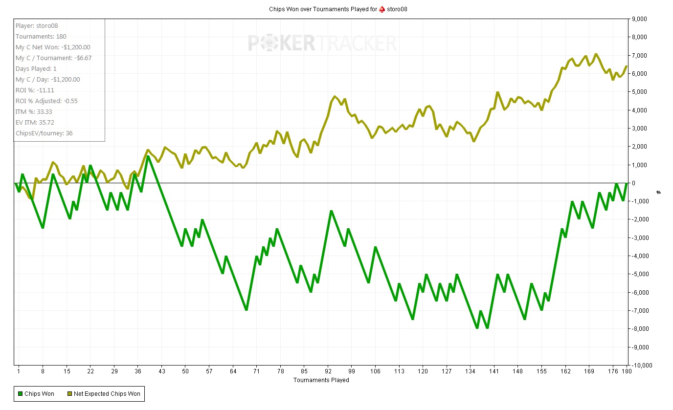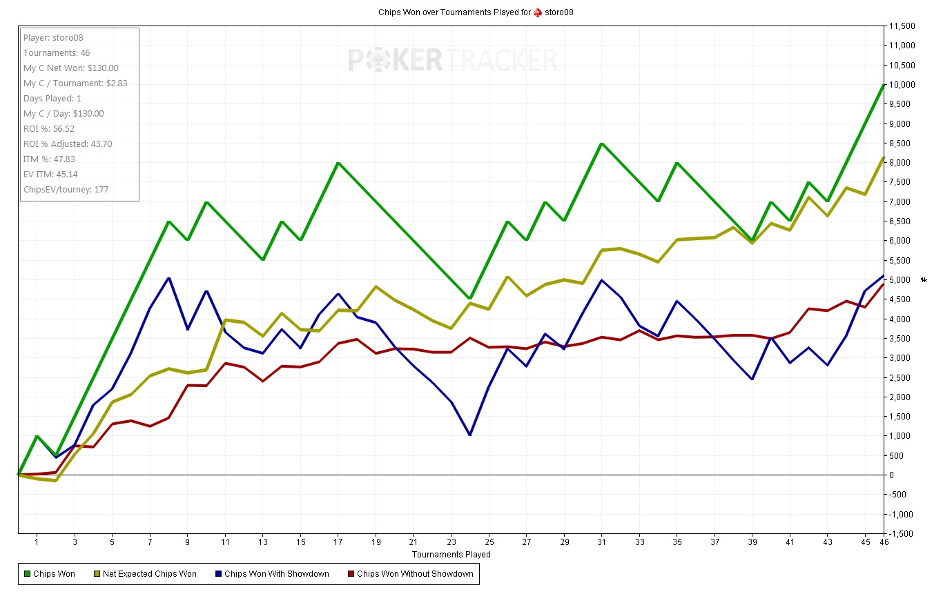Под утро с одними миниери и другими гавнорегами играл, с небольшой примесью жирных Никаких х10+ не ловил. Пока за апрель ничего выше х10 не выпадало. Доездное чудило. PokerStars - $57+$3|10/20 NL (3 max) - Holdem - 3 players Hand converted by PokerTracker 4 Akakabut0 (BB): 26 BB storo08 (BTN): 25.5 BB amatoriste (SB): 23.5 BB amatoriste posts SB 0.5 BB, Akakabut0 posts BB 1 BB Pre Flop: (pot: 1.5 BB) storo08 has J A storo08 raises to 2 BB, amatoriste calls 1.5 BB, fold Flop: (5 BB, 2 players) 6 A 3 amatoriste checks, storo08 bets 1.8 BB, amatoriste raises to 5 BB, storo08 calls 3.2 BB Turn: (15 BB, 2 players) 9 amatoriste bets 7 BB, storo08 calls 7 BB River: (29 BB, 2 players) K amatoriste bets 9.5 BB and is all-in, storo08 calls 9.5 BB amatoriste shows K 9 (Two Pair, Kings and Nines)(Pre 39%, Flop 5%, Turn 11%) storo08 shows J A (One Pair, Aces)(Pre 61%, Flop 95%, Turn 89%) amatoriste wins 48 BB Что это было ? Проверка документов чтоль.. опп крепкий рег. PokerStars - $57+$3|20/40 NL (3 max) - Holdem - 3 players Hand converted by PokerTracker 4 storo08 (BTN): 14.63 BB Tudlenudle (SB): 10.13 BB LEXA55 (BB): 12.75 BB Tudlenudle posts SB 0.5 BB, LEXA55 posts BB 1 BB Pre Flop: (pot: 1.5 BB) storo08 has K J storo08 raises to 2 BB, fold, LEXA55 raises to 12.75 BB and is all-in, storo08 calls 10.75 BB Flop: (26 BB, 2 players) 2 Q 2 Turn: (26 BB, 2 players) T River: (26 BB, 2 players) 9 LEXA55 shows 3 9 (Two Pair, Nines and Twos)(Pre 32%, Flop 20%, Turn 7%) storo08 shows K J (Straight, King High)(Pre 68%, Flop 80%, Turn 93%) storo08 wins 26 BB Классически заманил оппа в ловушку. PokerStars - $57+$3|15/30 NL (3 max) - Holdem - 2 players Hand converted by PokerTracker 4 storo08 (BB): 20 BB piorell (SB): 30 BB piorell posts SB 0.5 BB, storo08 posts BB 1 BB Pre Flop: (pot: 1.5 BB) storo08 has K 7 piorell raises to 2 BB, storo08 calls 1 BB Flop: (4 BB, 2 players) 7 T 3 storo08 checks, piorell checks Turn: (4 BB, 2 players) K storo08 checks, piorell bets 2 BB, storo08 calls 2 BB River: (8 BB, 2 players) A storo08 checks, piorell bets 22 BB, storo08 calls 16 BB and is all-in piorell shows 2 Q (High Card, Ace)(Pre 40%, Flop 16%, Turn 0%) storo08 shows K 7 (Two Pair, Kings and Sevens)(Pre 60%, Flop 84%, Turn 100%) storo08 wins 40 BB В целом денек гавно то ещё. Мало того, что немножко проиграл на Зените, так снова не смог посмотреть нормально матч. Включил телек и минуты через 4 мое спутниковое тв вырубилось в п... Короче, побежал на сайте снова на нтв-плюс купил трансляцию, посмотрел до 67 минуты, и там все зависло восвояси. Наладили к минуте 85-ой. Ну хоть деньги вернули. Мелочь, а неприятно. Второй раз даже футбол посмотреть немогу нормально. ![]() Ну и затем -1200 денег в покер сделался минус. Откатал за апрель 2200 спинов, ещё нужно откатать 800 штук. Буду катать 100-130 шт. в день до конца месяца. По профиту слегка откатило, но всё ещё могу сделать сколько планировал. ![]() |
