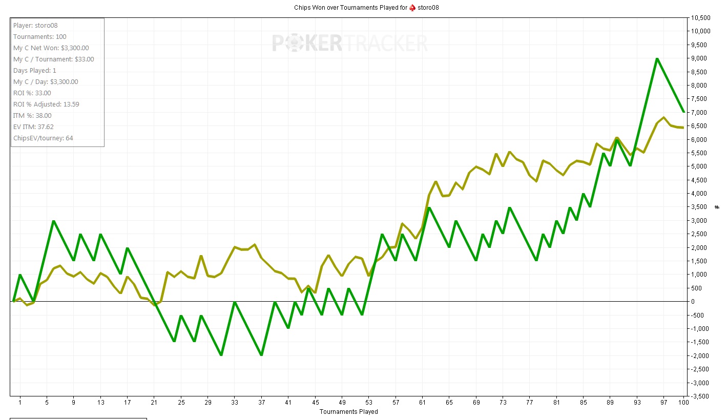 А так есть игроки которые много перебирали и есть те, кто не добирал сотни баинов. Вот тебе калькулятор дисперсии в помощь, чтоб понять какие бывают стрики. Все также зависит от твоего ожидания и кол-ва игр. |