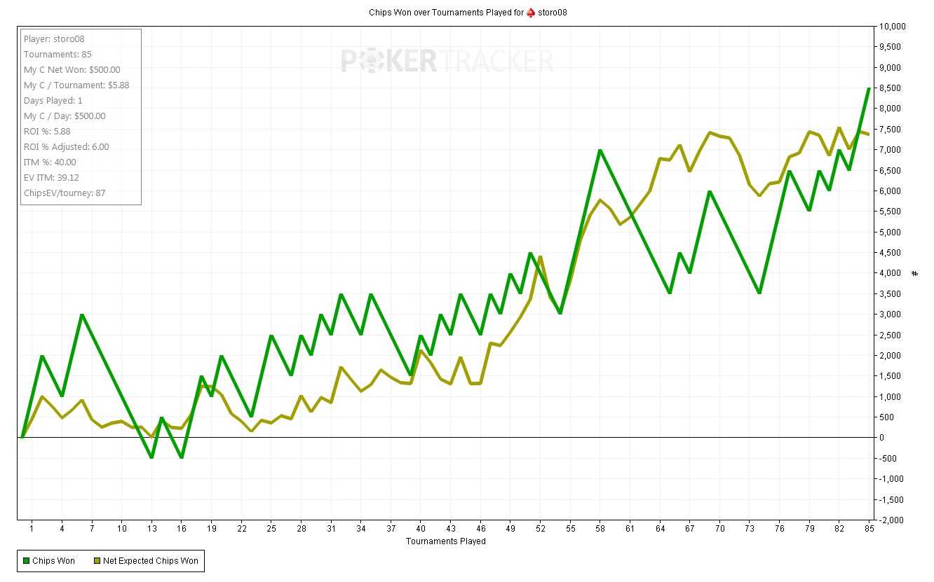 Шёл хотябы в приличном плюсе по ев фишкам за сегодня, но потом куча говна постфлоп, пару раз выставление в АА с парой аутов и все слито.