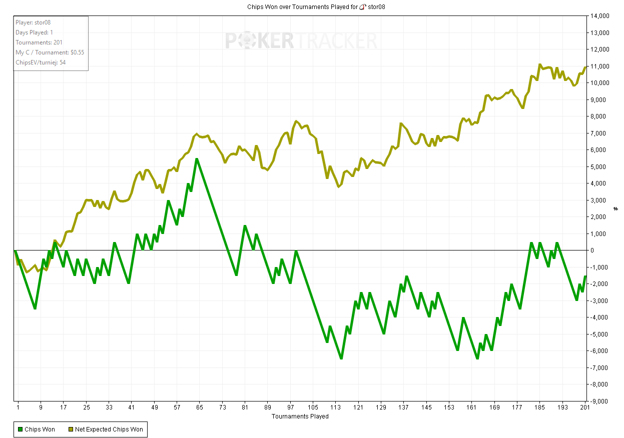 Сыграли 201 штуку двадцаток, PT4 после обновления до последней версии похоже корректно считает только результаты по фишкам и chip ev, результаты в деньгах и в множителях показывает не верно.