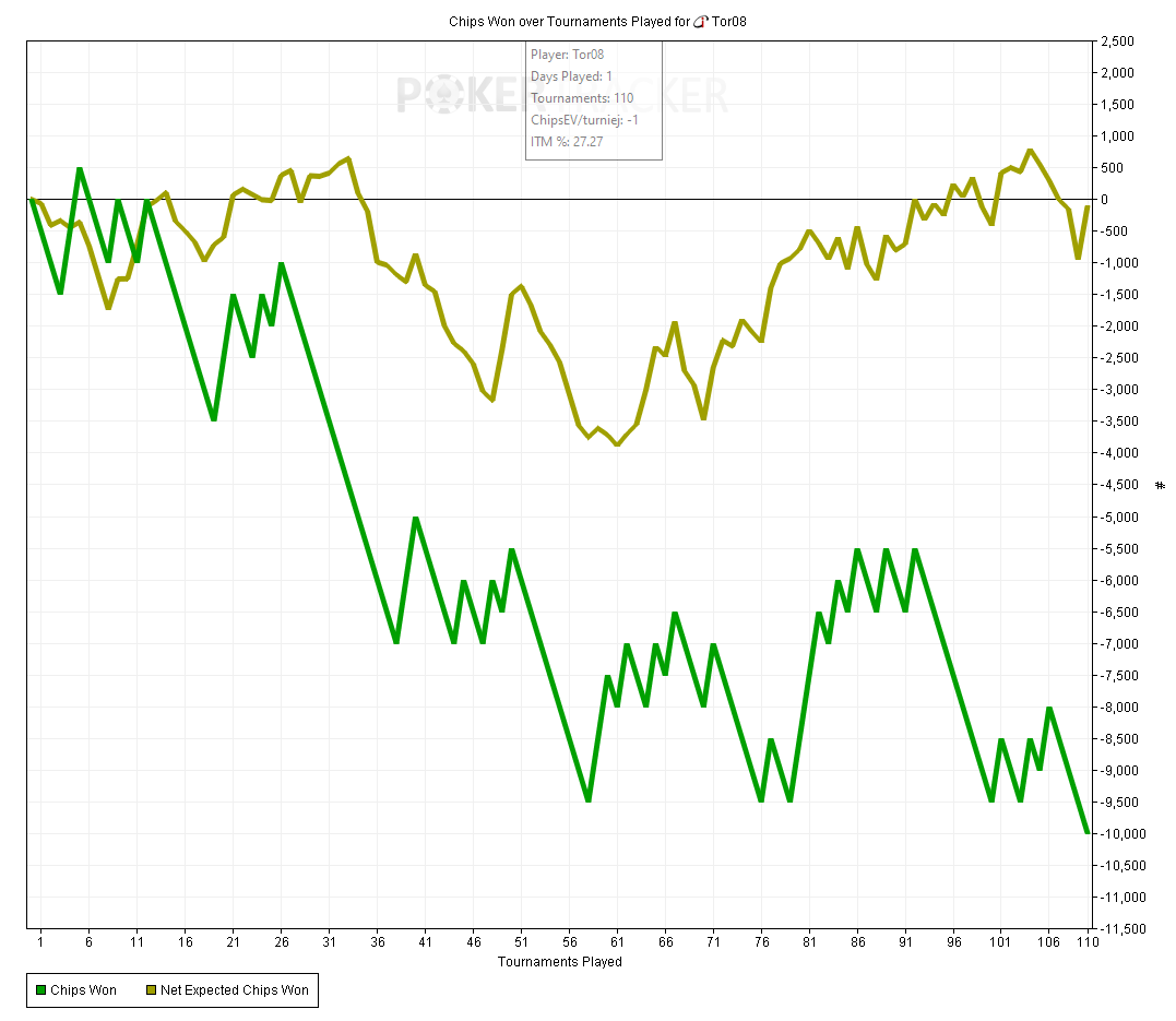 Сегодня играл чисто 20-ки, поле было супер, профит вышел неплохой, а вот EV дохловатое, но на такой дистанции такое случается сплошь и рядом.
