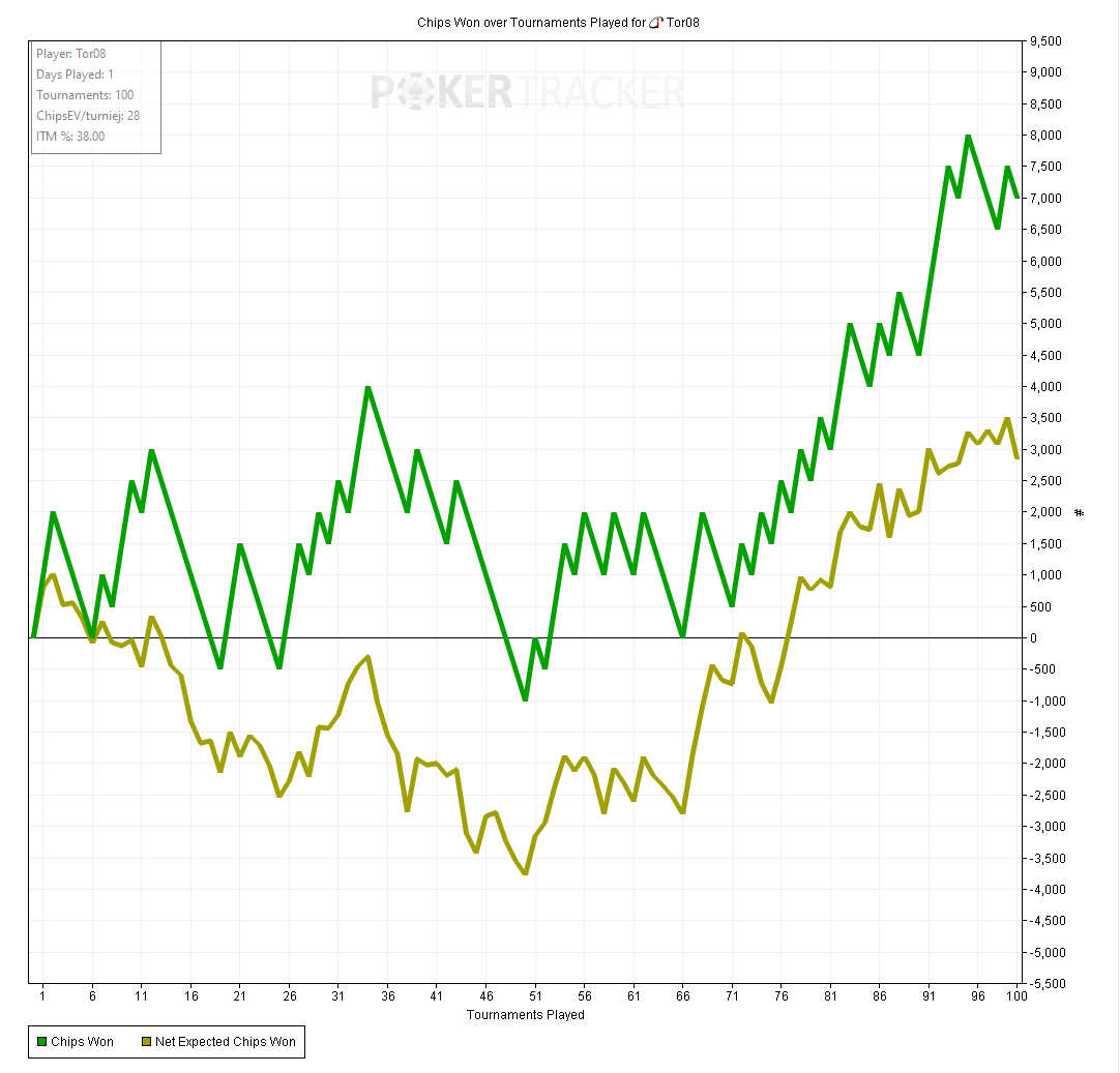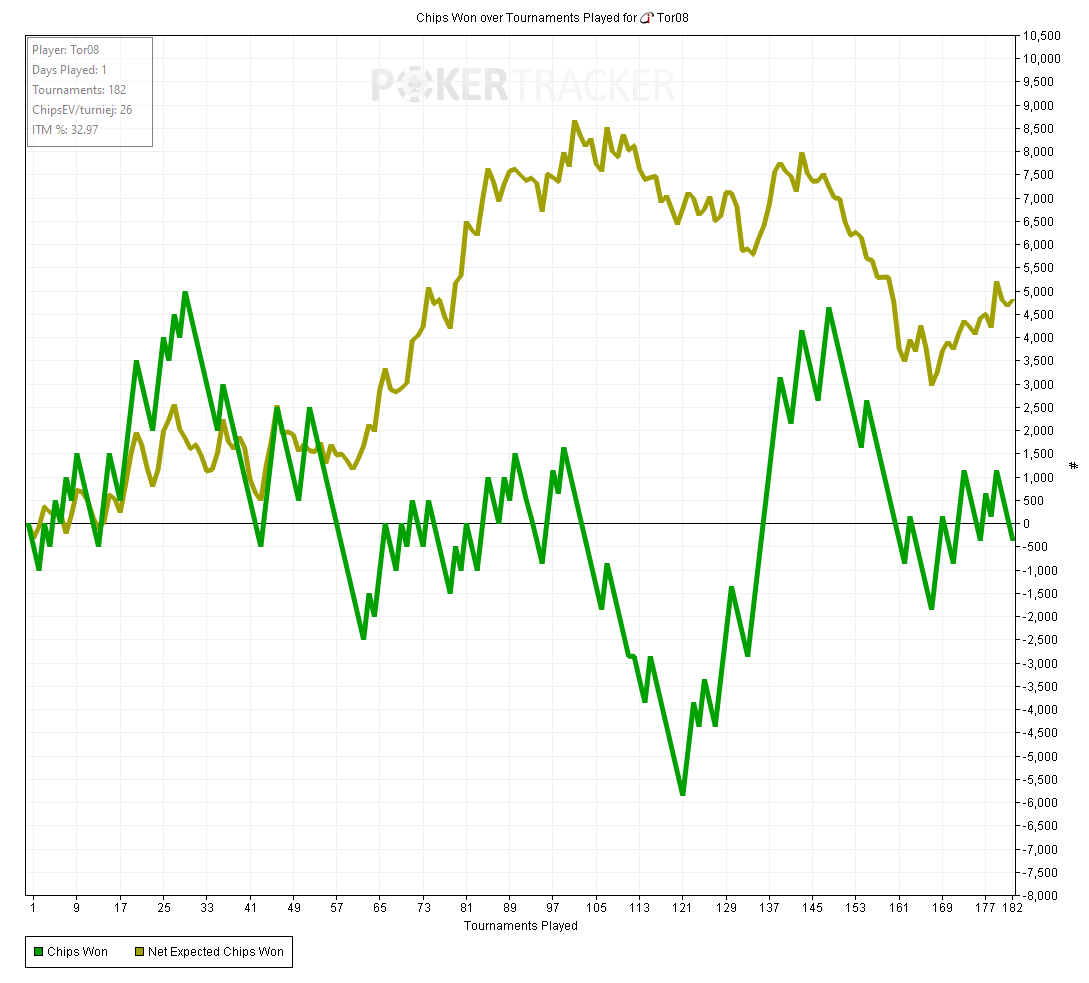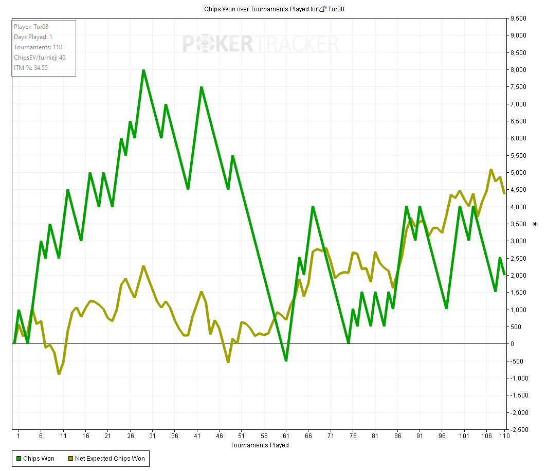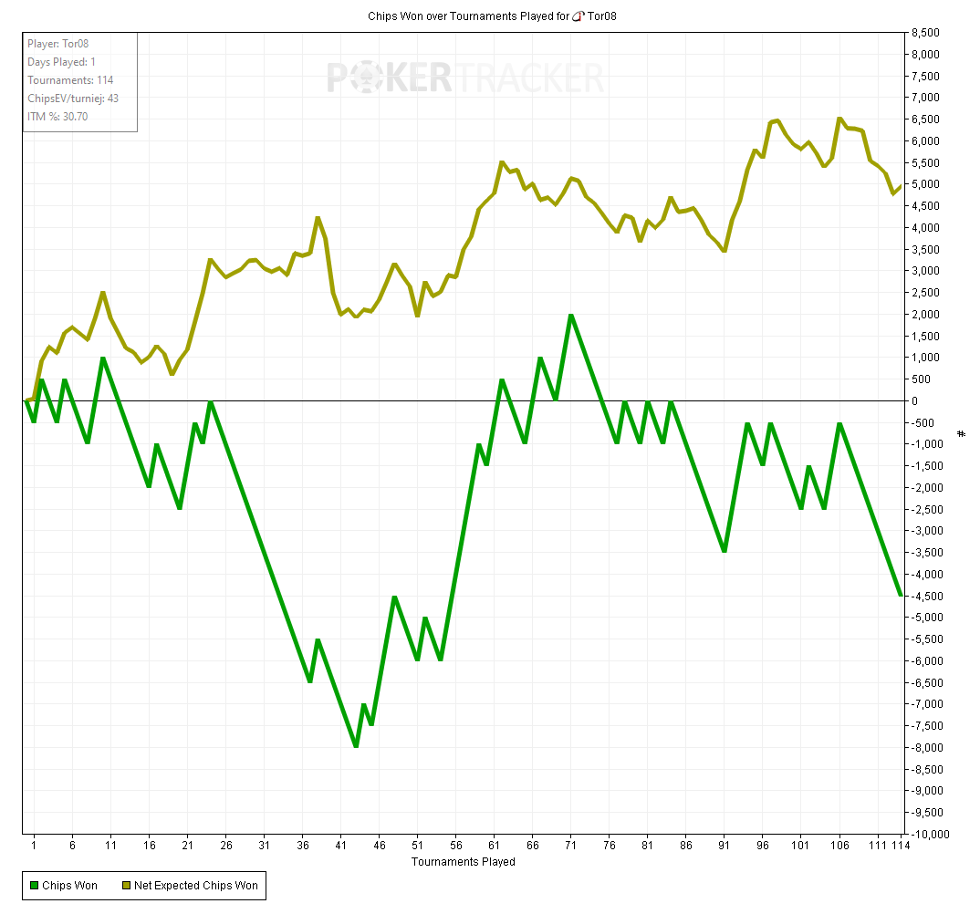 Тот случай когда график вообще не отображает того как сдавали - все блефы мимо, кулеров куча - то единички отлетят, то я поймаю трипсы против фулов, то допер соберу против стрита.