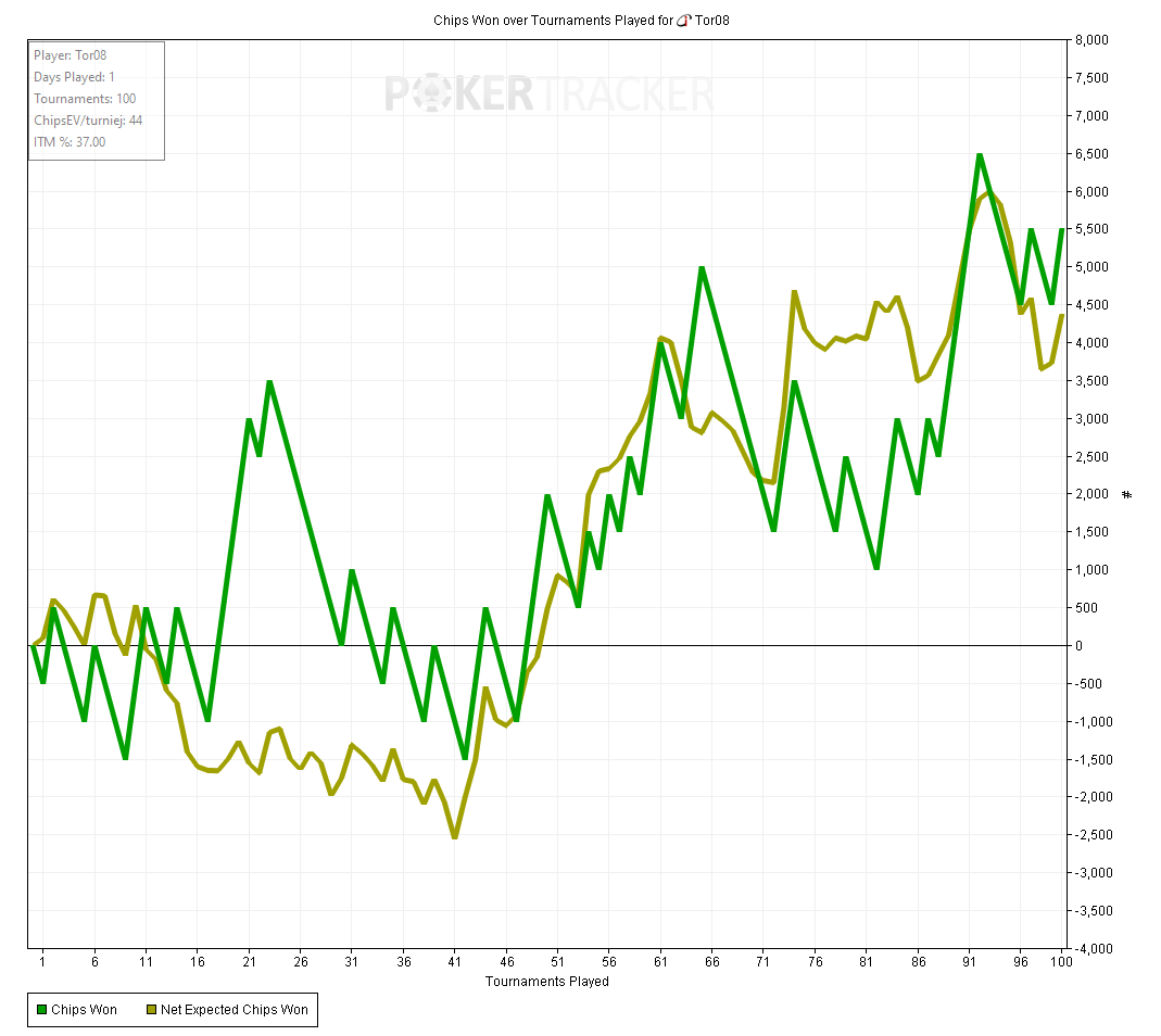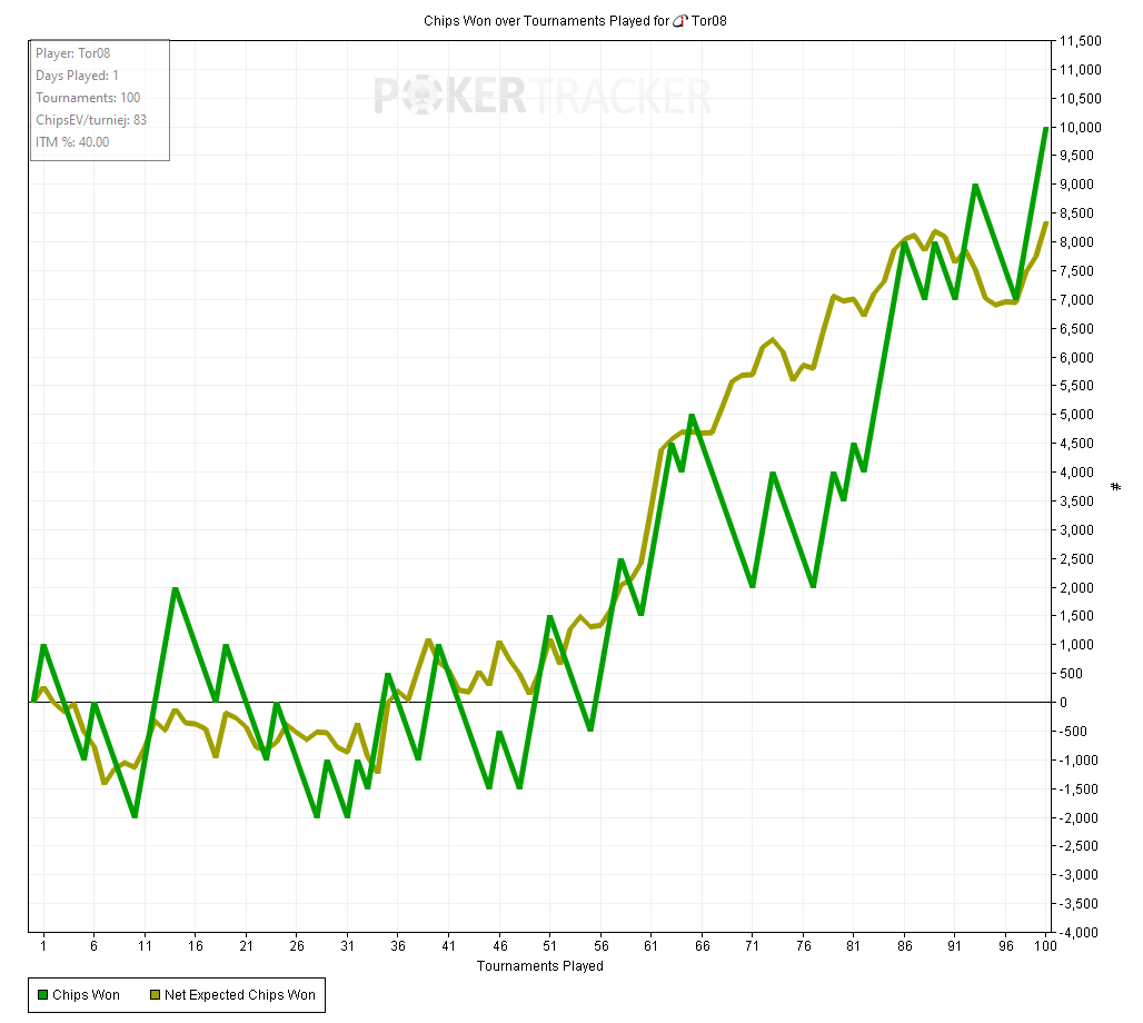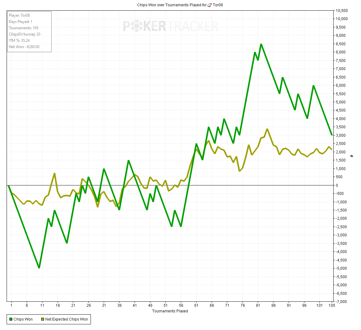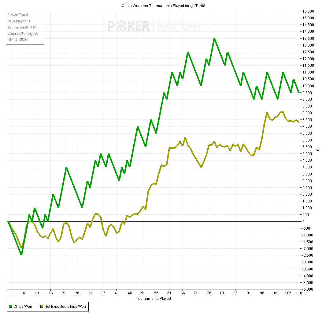 Тот случай когда график вообще не отображает того как сдавали - все блефы мимо, кулеров куча - то единички отлетят, то я поймаю трипсы против фулов, то допер соберу против стрита.
