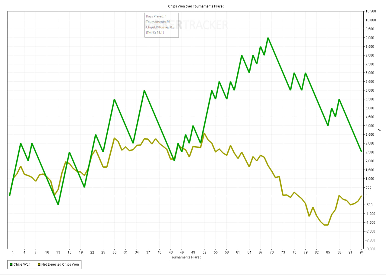 Жуть продолжается, на 70 турике сделал перерыв и все вниз улетело нахер, хотя старался, сплошь кулера и в итоге ещё и минус. И поле было рабочее вполне. Сложно объяснить этот феномен кроме как дисперсией, но уже 2 недели болтаемся около нуля.