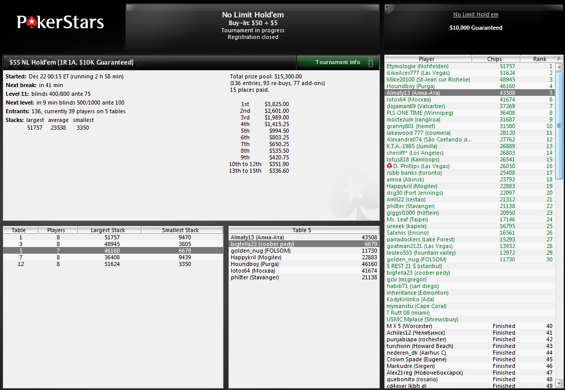 No Limit Holdem Tournament PokerStars 9 Players Hand Conversion Powered by weaktight.com $50+$5 Stacks: UTG lakewood 777 (14,524) UTG+1 lotos64 (22,809) MP1 Houndboy (50,940) MP2 Hero (12,865) MP3 M X 5 (15,137) CO hunganh72 (2,308) BTN cd4ever (11,894) SB Happykril (11,986) BB 25tonedabone (23,575) Blinds: 200/400 Ante 50 Pre-Flop: (1,050, 9 players) Hero is MP2 2 A![]() 3 folds, Hero raises to 1,100, 4 folds, 25tonedabone calls 700 Flop: 5 3 K (2,850, 2 players)25tonedabone checks, Hero bets 800, 25tonedabone raises to 2,400, Hero calls 1,600 Turn: 7 (7,650, 2 players)25tonedabone bets 4,800, Hero calls 4,800 River: 5 (17,250, 2 players)25tonedabone goes all-in 15,225, Hero goes all-in 4,515 Final Pot: 36,990 Hero shows a flush, Ace high 2 A![]() 25tonedabone shows a flush, King high 8 Q![]() Hero wins 26,280 (net +13,415) 25tonedabone collects 10,710 (net -12,865) Я неизвестный, но это временно