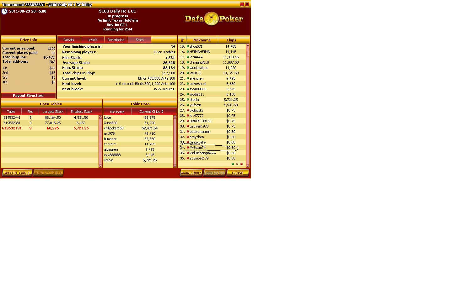 0-2.687 фишек.Делаю перерыв до вечера.А вечером буду ещё играть :) .