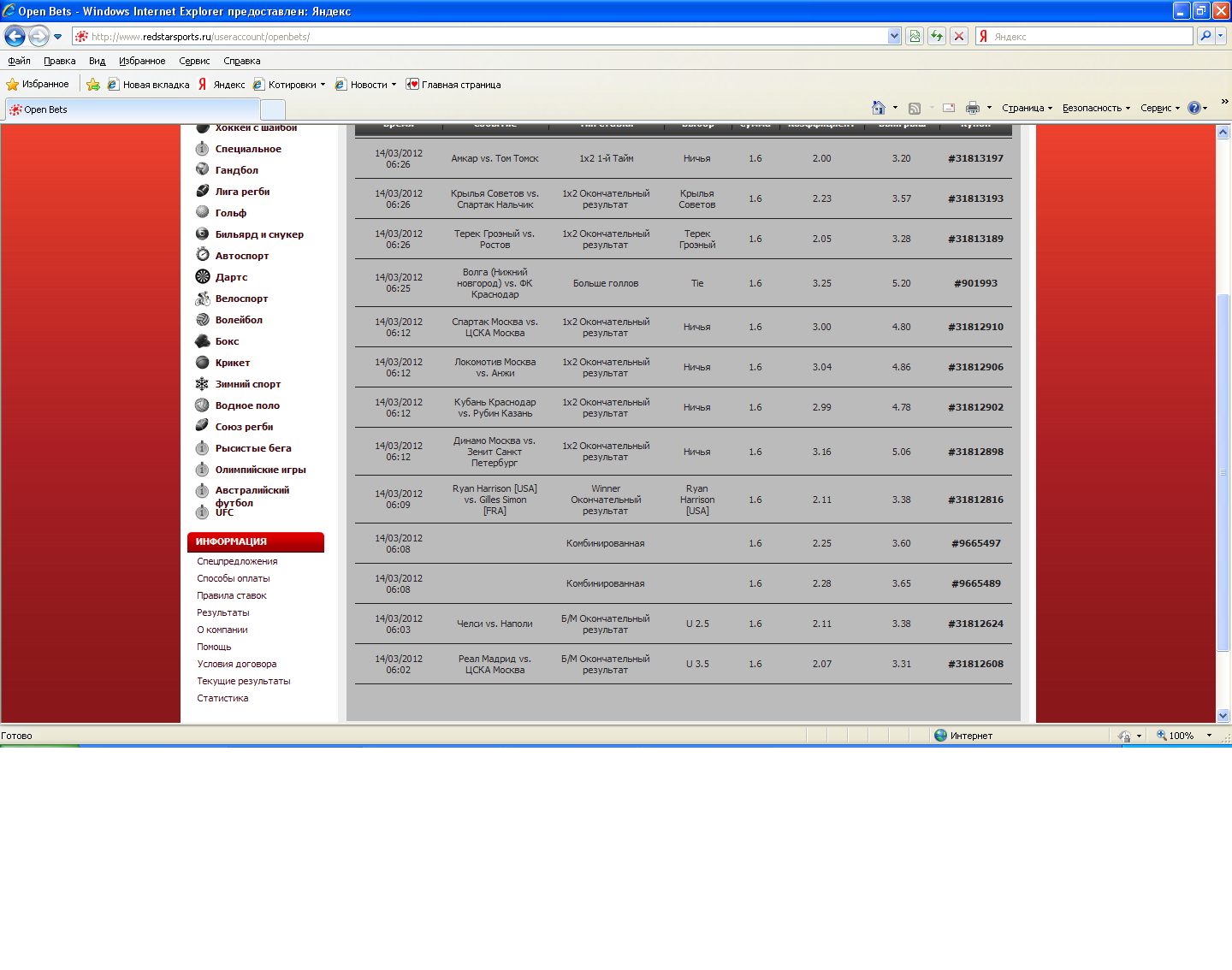 В ставках БР снова стал больше 50 долларов(40 в кассе+11 в ставках).Посмотрел сегодня с удовольствием и футбол,и хоккей,и биатлон.