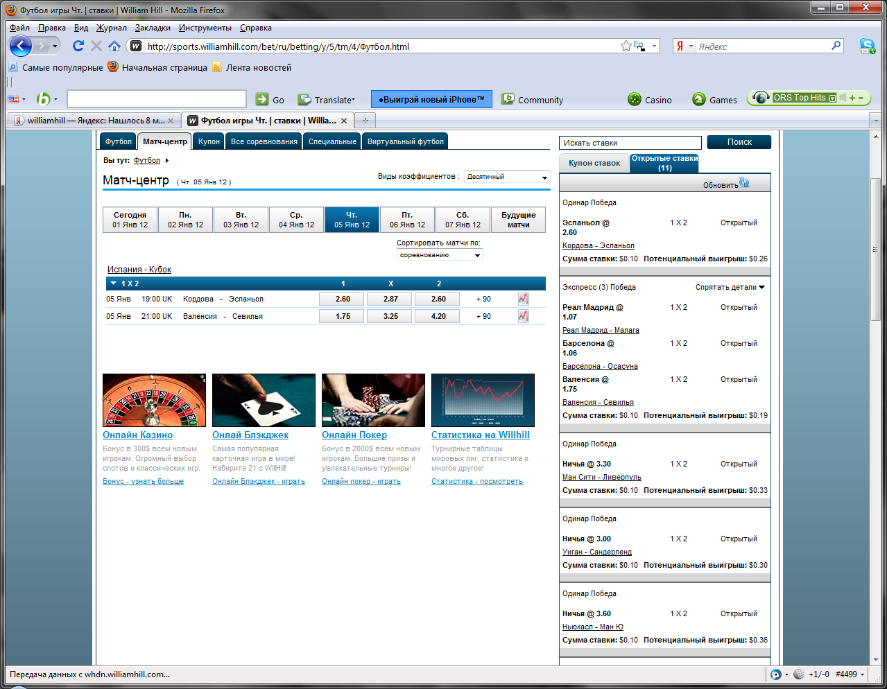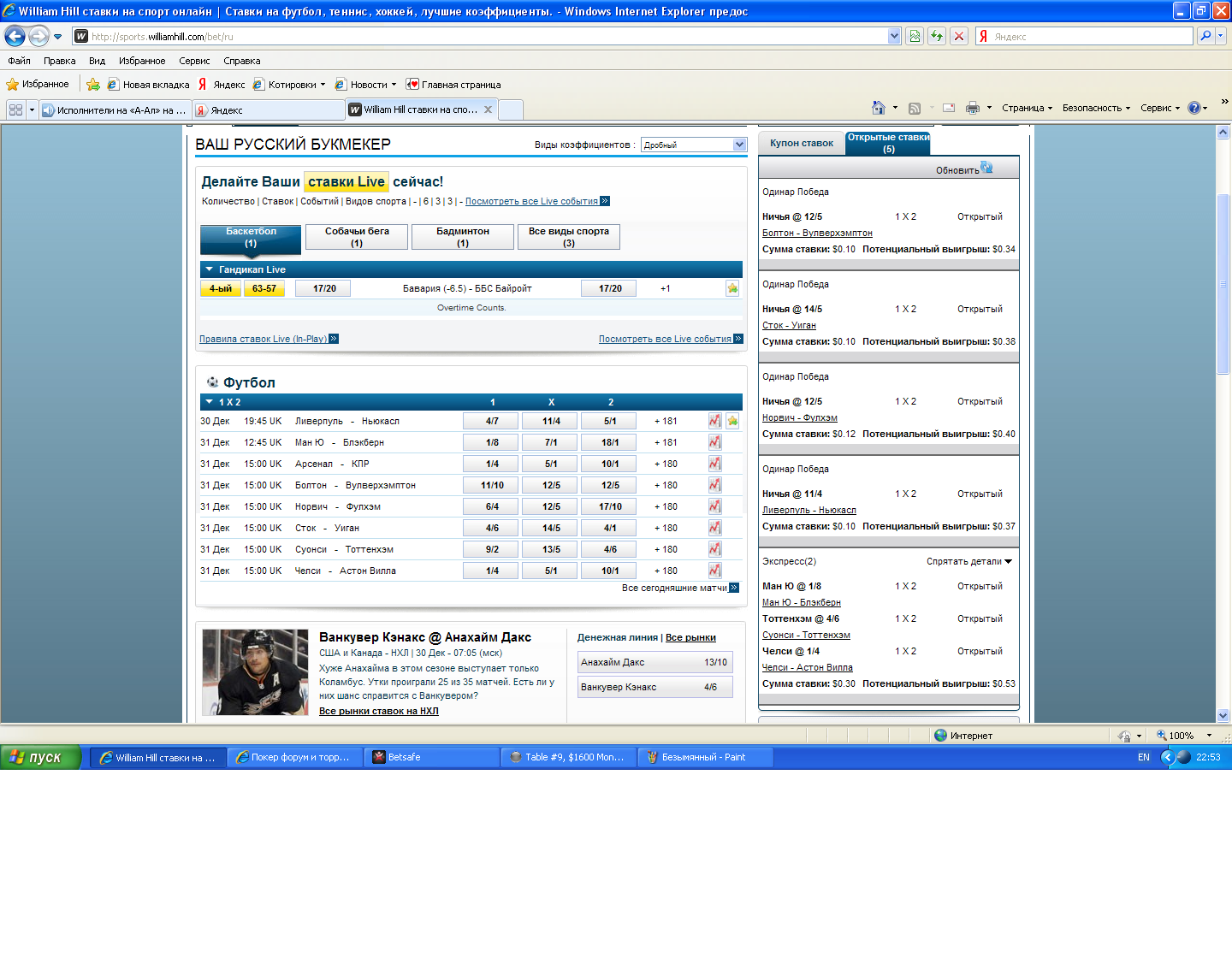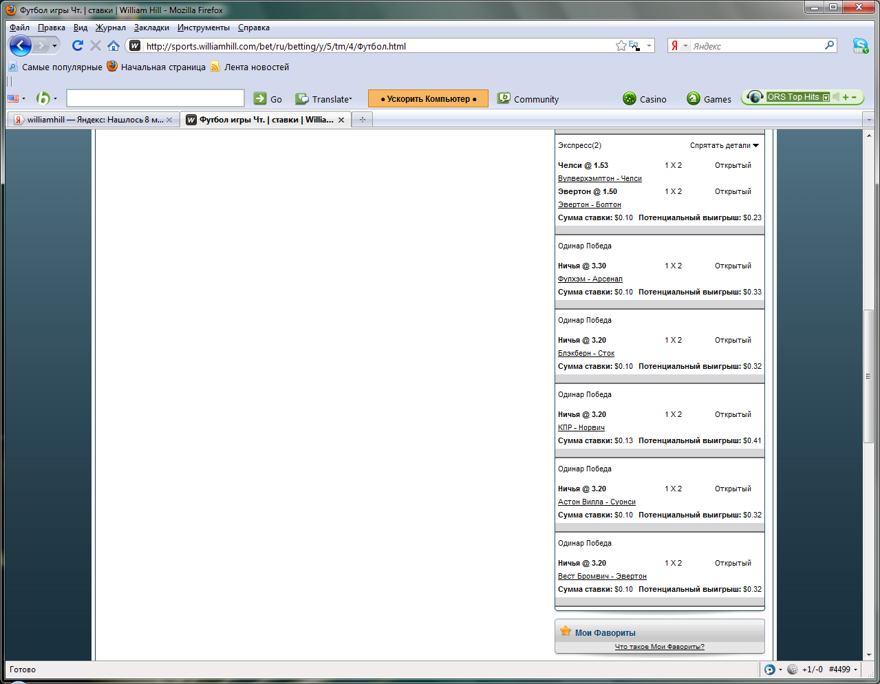 .Остались только 11 ставок(сыграют?не сыграют?) в ВильямХилле.Так мне до конца праздников и заняться нечем будет.Ну да ладно...Всем удачи