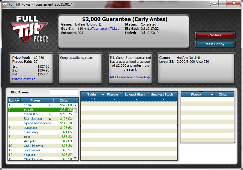 Poker Stars $4.00+$0.40 No Limit Hold'em Tournament - t200/t400 Blinds + t50 - 8 players - View hand 2245960
