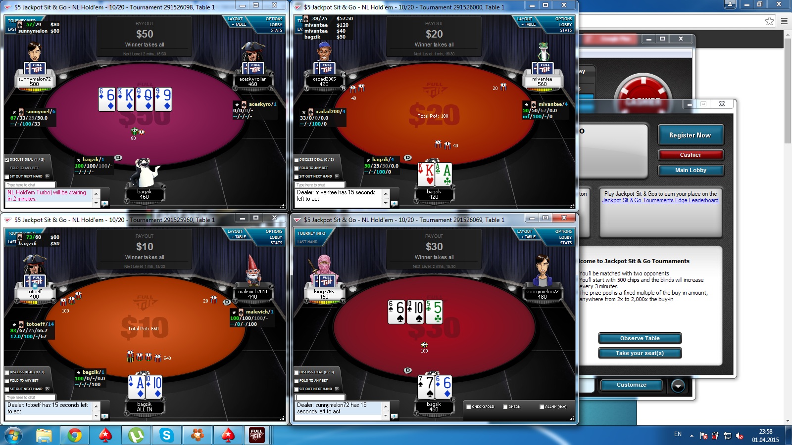 Вчера хотел поиграть турниры, но не мог вечер посвятить покеру, надо было отлучаться.