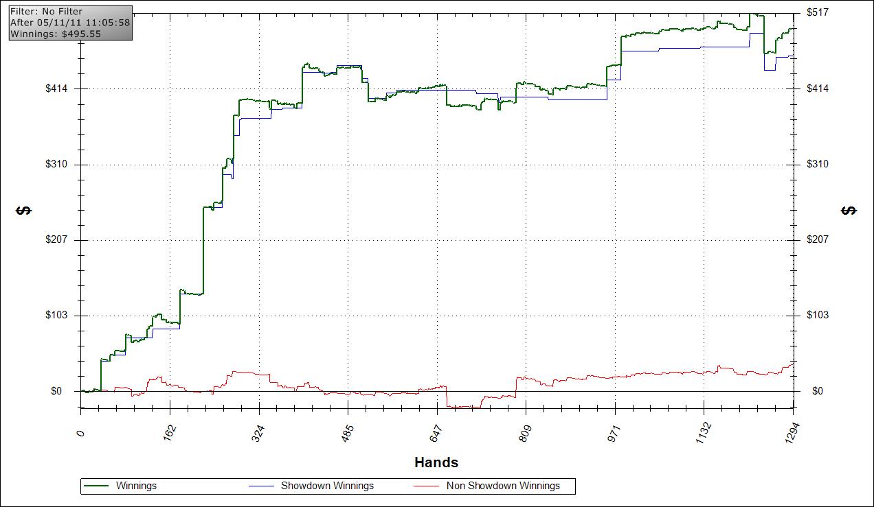 ), но из 16 туриков я взял 1-е и 3-е места. Плюс составил примерно 320$. За тем я решил, что можно и нл50 покатать, ведь плюсанул за день 6 стеков))) Но в этот день мне так ужасно заходило, что я спустил почти весь плюс. Сказывается то, что в кеше я тильтую. Обрадовала только последняя раздача на последнем столе, которая скрасила весь минус.