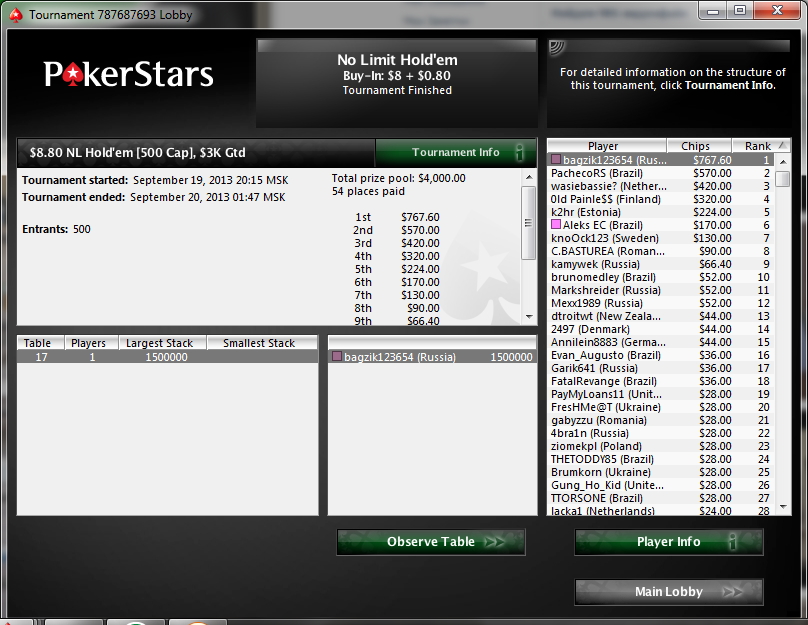 Зовут меня Влад, мне 22 года, живу в городе Липецк. Решил завести небольшой дневничек для более простого контроля над тем что я делаю в покере. Играть буду РАШ на 135чел за 4$. Играю иго уже больше месяца ша 600 туров держу рой около 80%. Хочется попробовать 11-ый лимит, но из-за постоянных кэшаутов не получается...да и пока 50к деревянных в месяц мне хватает) Цель до конца года набить 1,5-2к. График прилагается. Бр 800$ сегодня плюсанул 250$. После кэшаутов оставляю мин 600$. Последний раз редактировалось bagzik 08 янв 2012, 18:36, всего редактировалось 28 раз(а).